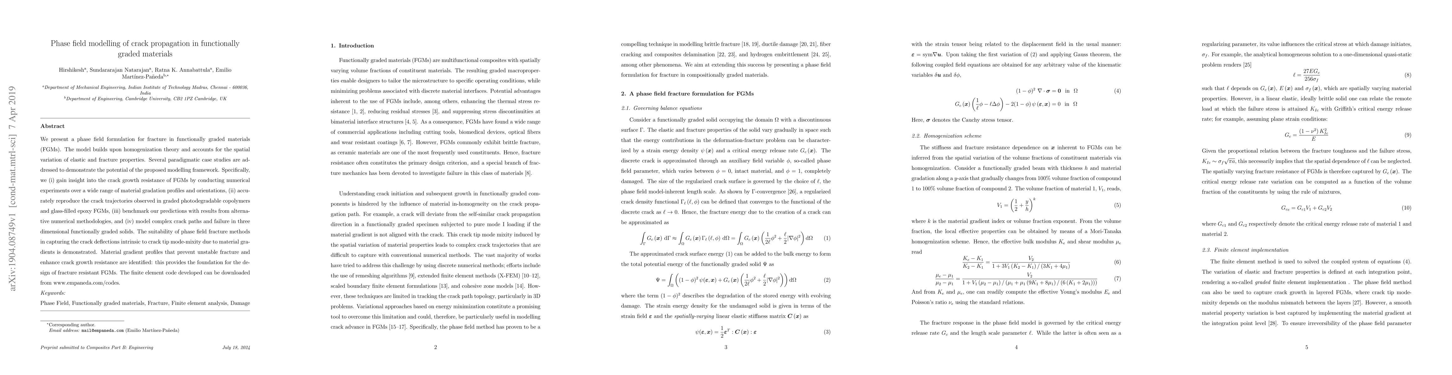 This paper introduces a phase field model for simulating crack propagation in functionally graded materials, leveraging homogenization theory to account for material property gradients. The model's effectiveness is demonstrated through various case studies, showing its ability to predict crack paths and resistance in complex three-dimensional FGMs.