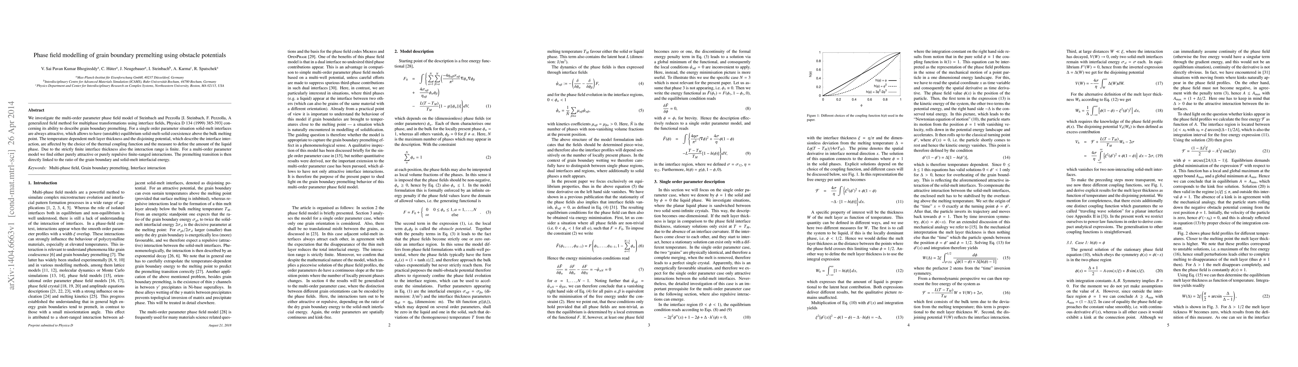 This paper explores the Steinbach and Pezzolla phase field model for multiphase transformations, focusing on its capacity to describe grain boundary premelting. The study reveals that the model's ability to represent premelting depends on the thermal coupling function and the definition of liquid phase amount, leading to finite-range interactions and a premelting transition ratio linked to interfacial energies.