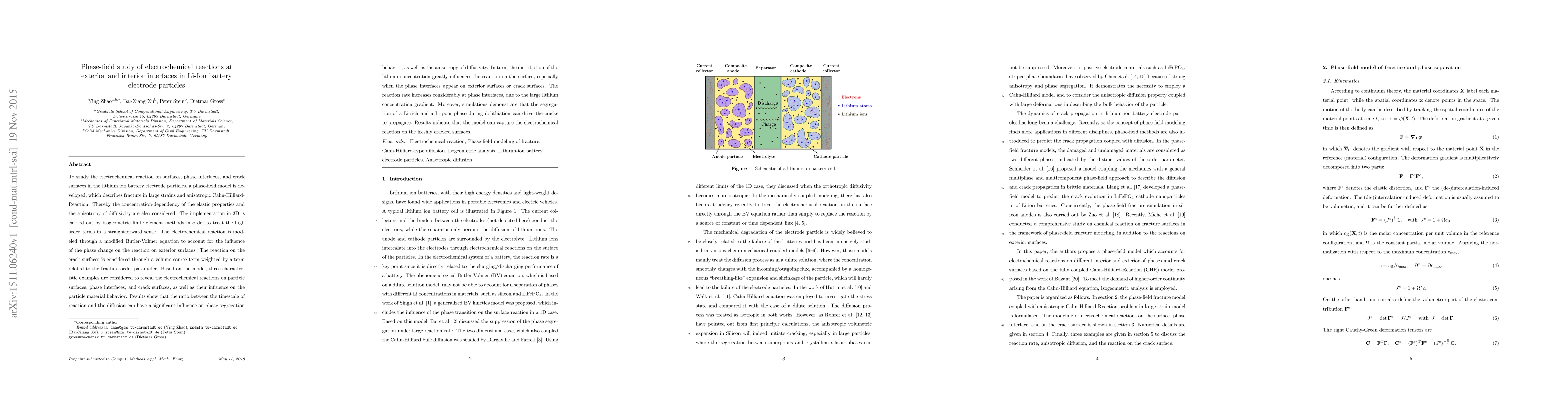 The paper presents a novel phase-field model that incorporates anisotropic Cahn-Hilliard diffusion and fracture mechanics to study electrochemical reactions in battery electrode particles.