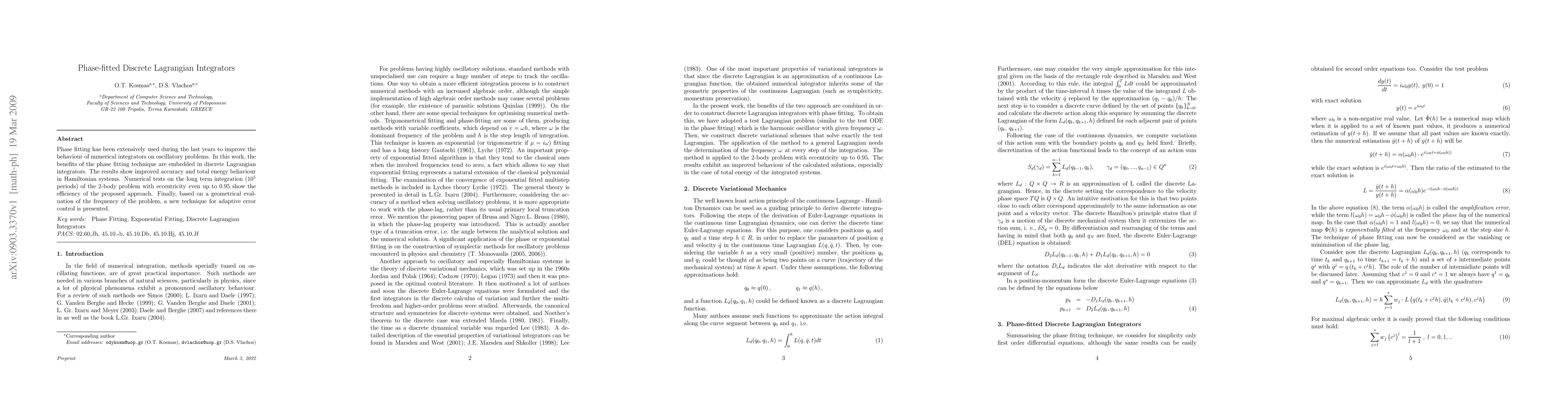 A new method for improving numerical integrators on oscillatory problems is presented, combining phase fitting with discrete Lagrangian integrators, showing improved accuracy and total energy behavior in Hamiltonian systems.