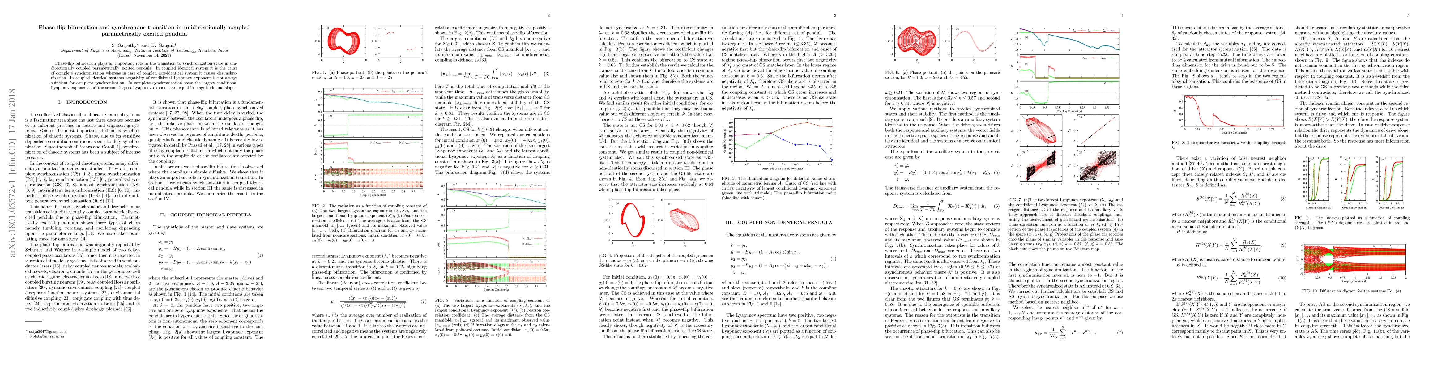 This paper investigates phase-flip bifurcation in unidirectionally coupled parametrically excited pendula, showing it leads to complete synchronization in identical systems but desynchronization in non-identical ones. It concludes that synchronization in identical systems requires specific conditions beyond just negative conditional Lyapunov exponent.