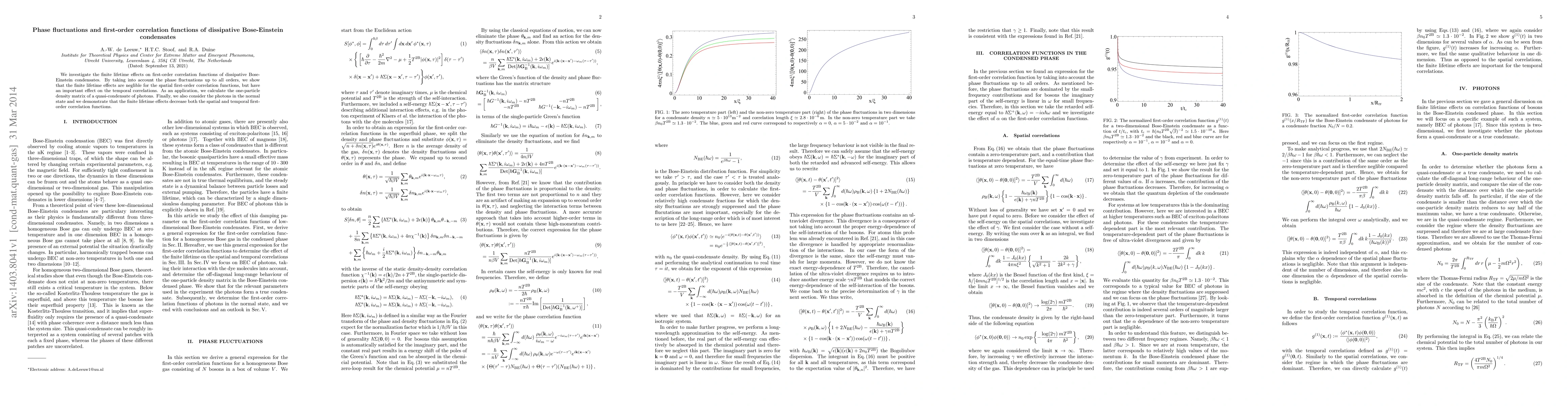 This paper examines how finite lifetime impacts first-order correlation functions in dissipative Bose-Einstein condensates, finding negligible effects on spatial correlations but significant effects on temporal correlations. It also applies these findings to calculate the one-particle density matrix of photon quasi-condensates and normal states, showing reduced spatial and temporal correlations due to finite lifetime.