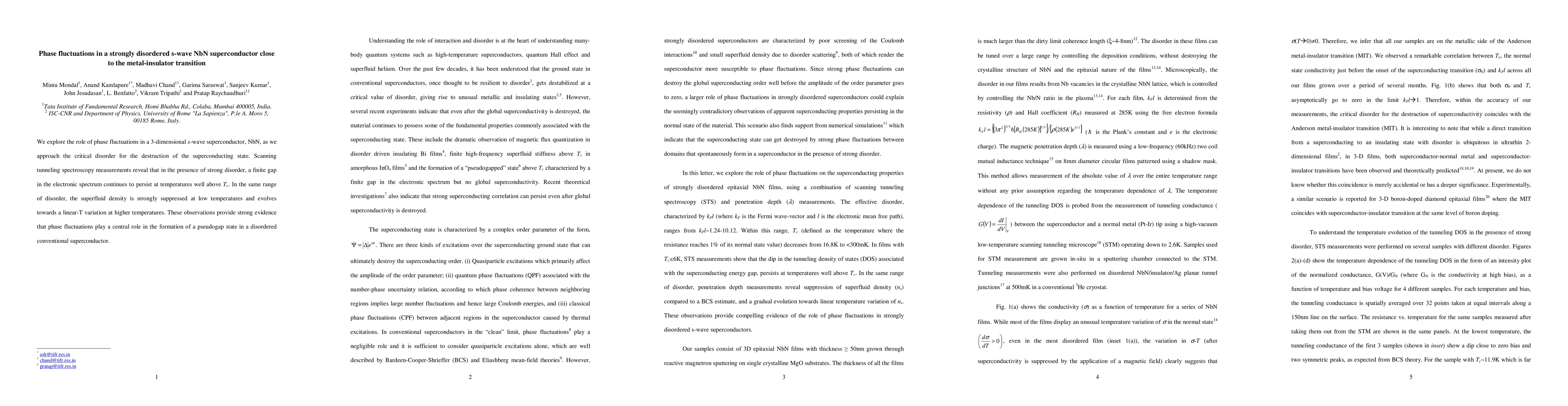 This study investigates phase fluctuations in a 3D s-wave superconductor, NbN, near the metal-insulator transition, revealing a persistent finite gap above Tc and a suppression of superfluid density, indicating phase fluctuations induce a pseudogap state.