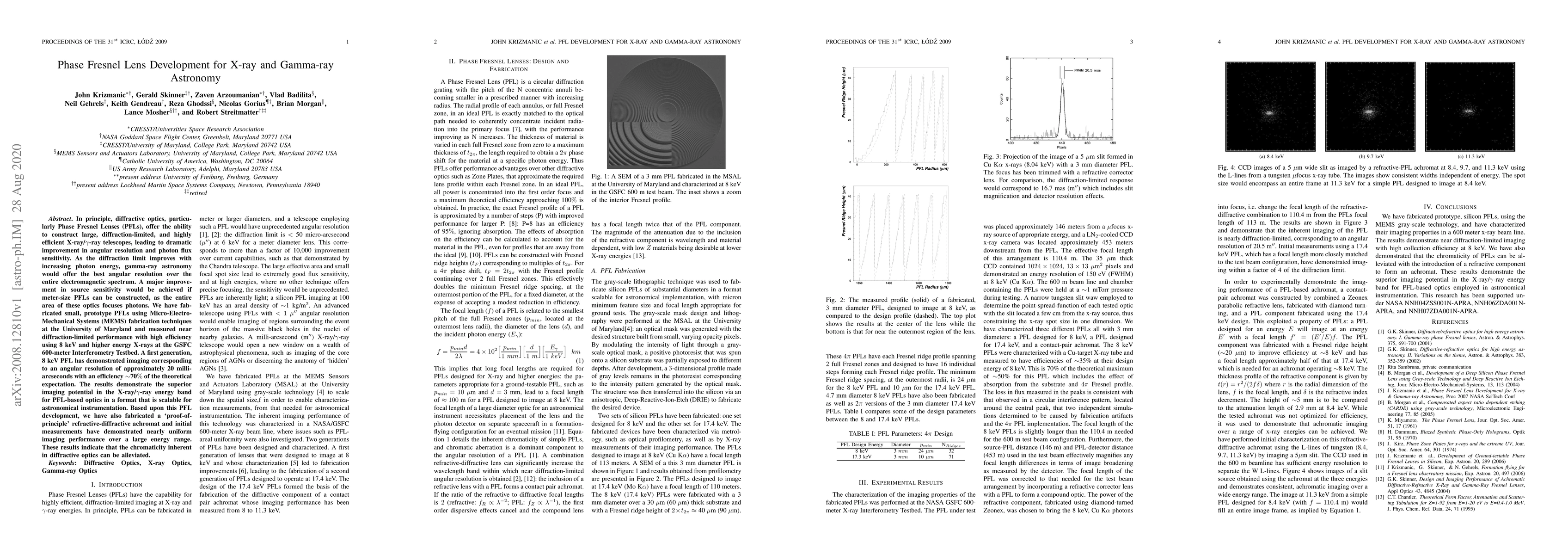 This paper reports the development of Phase Fresnel Lenses (PFLs) for X-ray and gamma-ray astronomy, showcasing their potential to significantly enhance angular resolution and photon flux sensitivity. The authors fabricated prototype PFLs using MEMS techniques, achieving near diffraction-limited performance with high efficiency, demonstrating an angular resolution of 20 milli-arcseconds and efficiency of 70% at 8 keV.