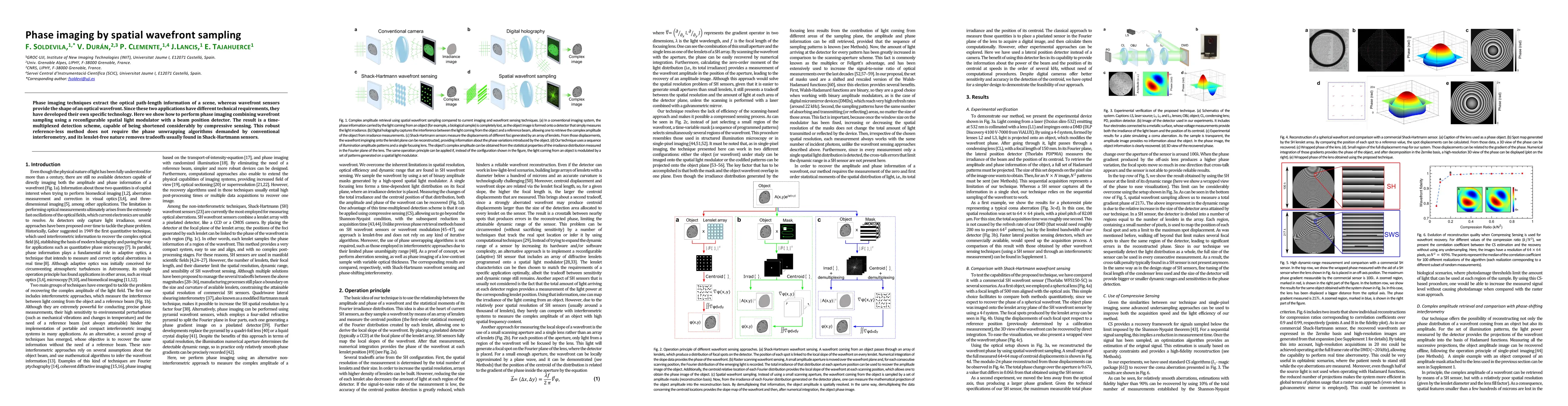 This paper presents a novel phase imaging technique that combines wavefront sampling with a reconfigurable spatial light modulator and a beam position detector, enabling a time-multiplexed detection scheme enhanced by compressive sensing. This method offers a robust, reference-less approach that eliminates the need for phase unwrapping and avoids the tradeoffs typical of conventional interferometry and Shack-Hartmann sensors.