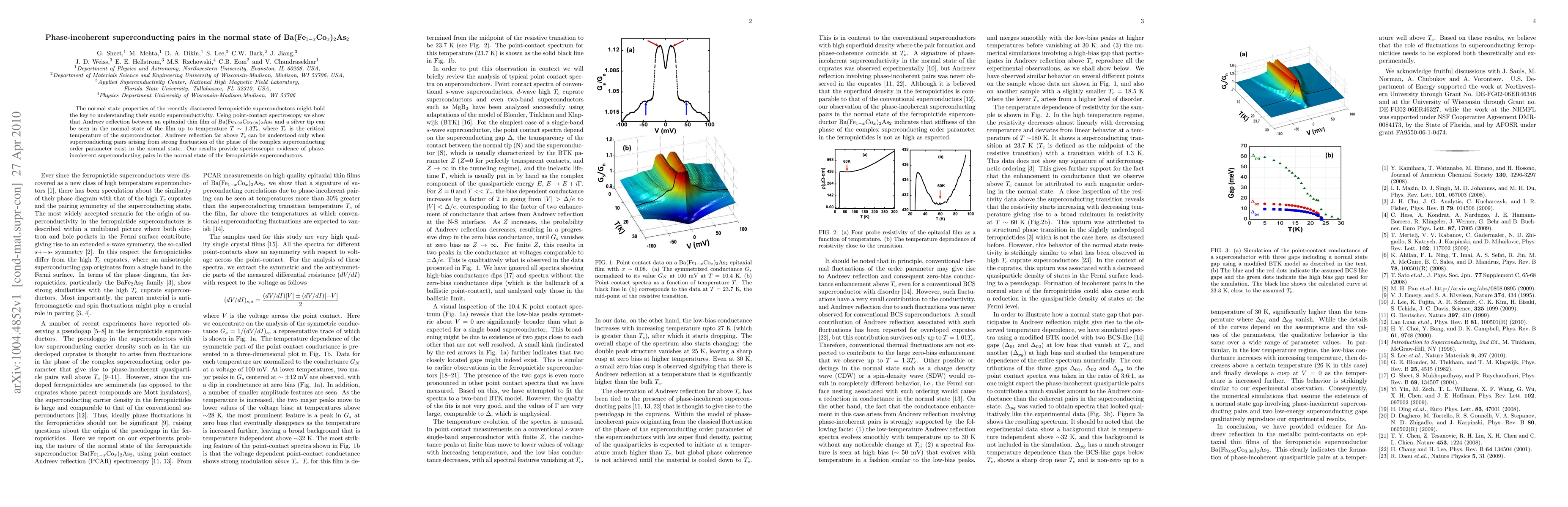 This study reveals phase-incoherent superconducting pairs in the normal state of Ba(Fe$_{0.92}$Co$_{0.08}$)$_2$As$_2$, using point-contact spectroscopy, which shows Andreev reflection up to $T\sim1.3T_c$. This finding provides spectroscopic evidence for the existence of these pairs, suggesting they may be key to understanding the material's exotic superconductivity.