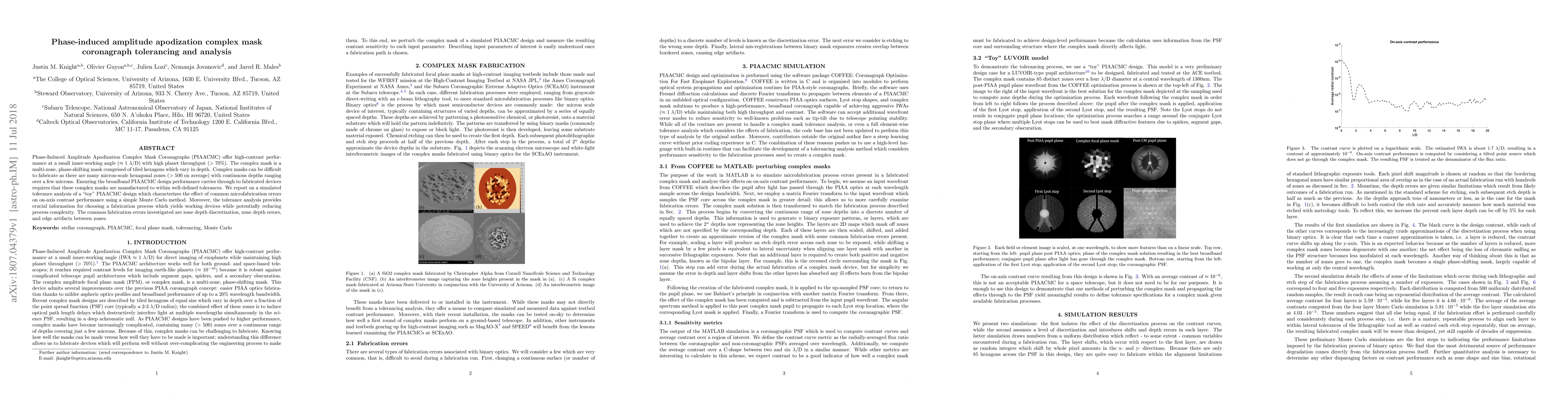Phase-Induced Amplitude Apodization Complex Mask Coronagraphs (PIAACMC) offer high-contrast performance at a small inner-working angle ($\approx$ 1 $\lambda$/D) with high planet throughput ($>$ 70%). The complex mask is a multi-zone, phase-shifting mask comprised of tiled hexagons which vary in depth. Complex masks can be difficult to fabricate as there are many micron-scale hexagonal zones ($>$ 500 on average) with continuous depths ranging over a few microns. Ensuring the broadband PIAACMC design performance carries through to fabricated devices requires that these complex masks are manufactured to within well-defined tolerances. We report on a simulated tolerance analysis of a "toy" PIAACMC design which characterizes the effect of common microfabrication errors on on-axis contrast performance using a simple Monte Carlo method. Moreover, the tolerance analysis provides crucial information for choosing a fabrication process which yields working devices while potentially reducing process complexity. The common fabrication errors investigated are zone depth discretization, zone depth errors, and edge artifacts between zones.