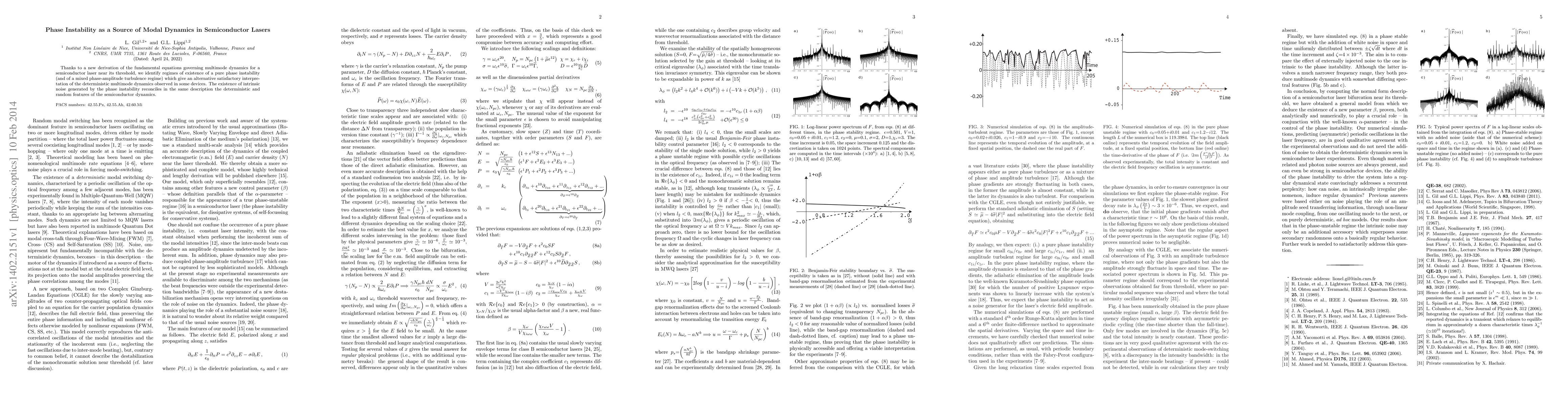 This paper identifies regimes where phase instability leads to deterministic multimode dynamics in semiconductor lasers, offering an alternative interpretation that reconciles both deterministic and random features through intrinsic noise generated by phase instability.