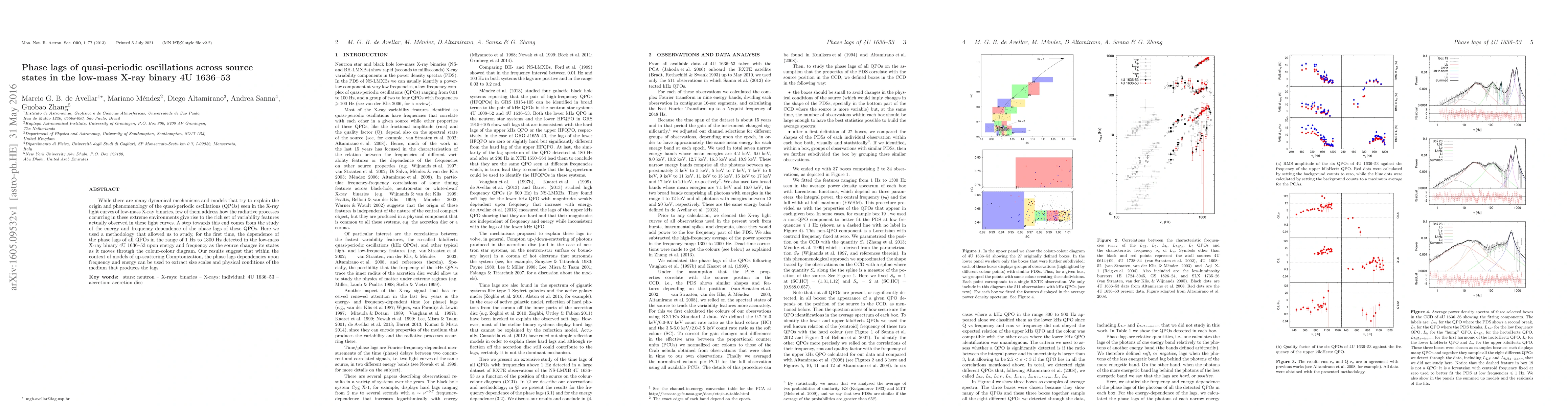 While there are many dynamical mechanisms and models that try to explain the origin and phenomenology of the quasi-periodic oscillations (QPOs) seen in the X-ray light curves of low-mass X-ray binaries, few of them address how the radiative processes occurring in these extreme environments give rise to the rich set of variability features actually observed in these light curves. A step towards this end comes from the study of the energy and frequency dependence of the phase lags of these QPOs. Here we used a methodology that allowed us to study, for the first time, the dependence of the phase lags of all QPOs in the range of 1 Hz to 1300 Hz detected in the low-mass X-ray binary 4U 1636-53 upon energy and frequency as the source changes its states as it moves through the colour-colour diagram. Our results suggest that within the context of models of up-scattering Comptonization, the phase lags dependencies upon frequency and energy can be used to extract size scales and physical conditions of the medium that produces the lags.