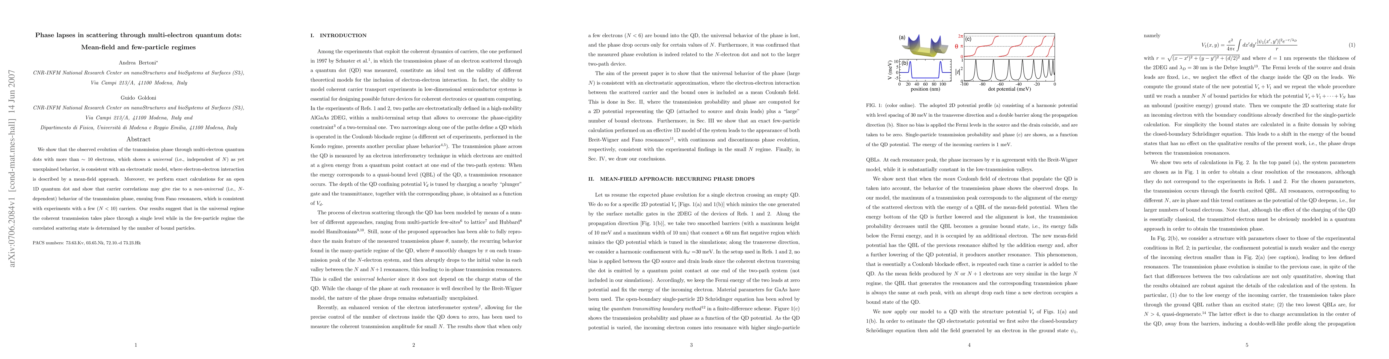 We show that the observed evolution of the transmission phase through multi-electron quantum dots with more than approximately ten electrons, which shows a universal (i.e., independent of N) as yet unexplained behavior, is consistent with an electrostatic model, where electron-electron interaction is described by a mean-field approach. Moreover, we perform exact calculations for an open 1D quantum dot and show that carrier correlations may give rise to a non-universal (i.e., N-dependent) behavior of the transmission phase, ensuing from Fano resonances, which is consistent with experiments with a few (N < 10) carriers. Our results suggest that in the universal regime the coherent transmission takes place through a single level while in the few-particle regime the correlated scattering state is determined by the number of bound particles.