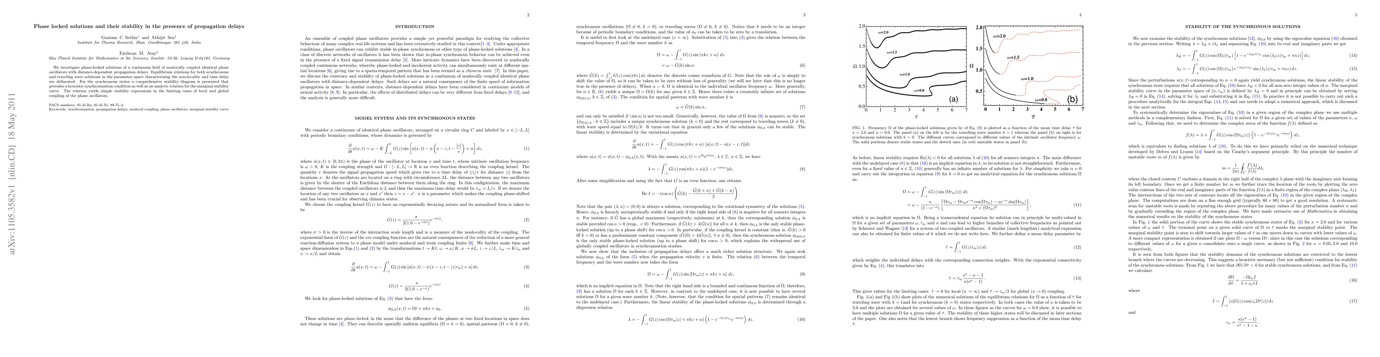 This paper examines phase-locked solutions in a network of nonlocally coupled phase oscillators with propagation delays, delineating synchronous and traveling wave equilibria. It provides a stability diagram for synchronous states, offering a synchronization condition and an analytic relation for the marginal stability curve, with simple stability expressions for local and global coupling scenarios.