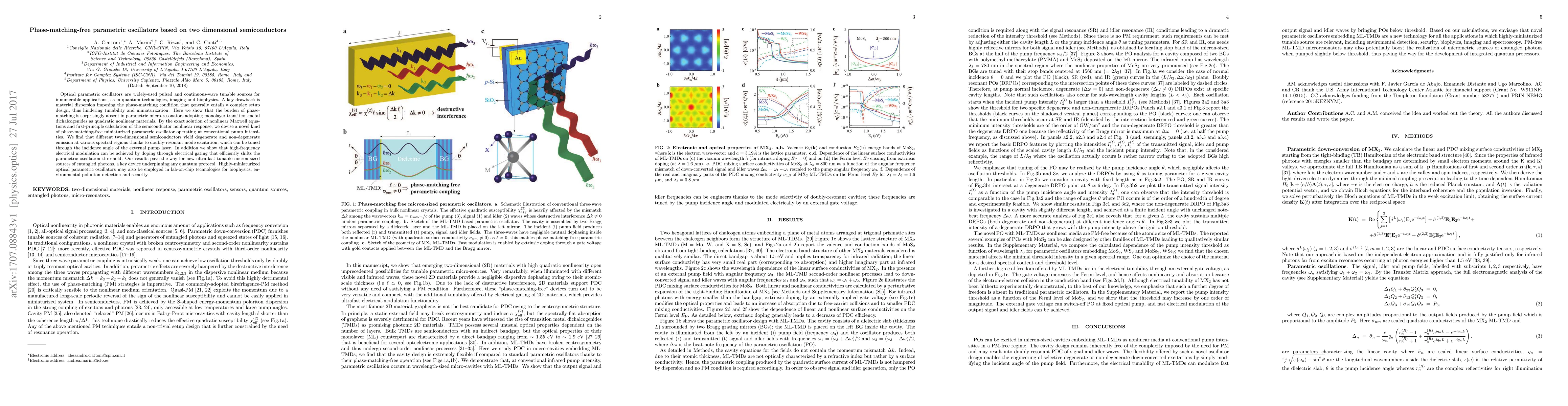 This paper demonstrates phase-matching-free optical parametric oscillators using monolayer transition-metal dichalcogenides in micro-resonators, enabling tunable, miniaturized sources of entangled photons without complex setups. The study shows that different 2D semiconductors can yield tunable emission through external pump modulation and electrical doping.
