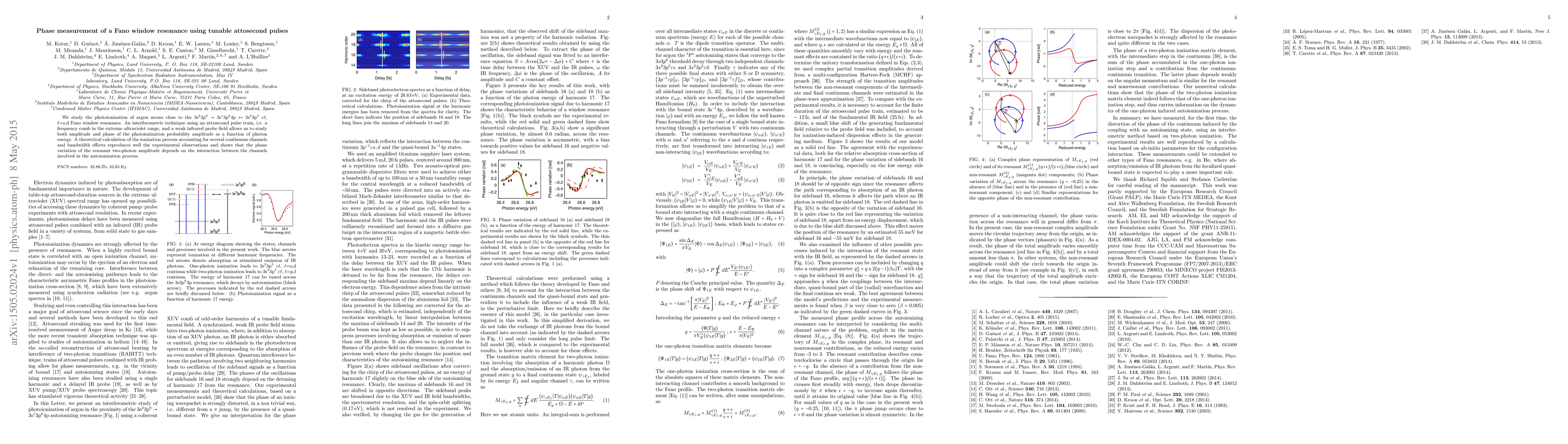 We study the photoionization of argon atoms close to the 3s$^2$3p$^6$ $\rightarrow$ 3s$^1$3p$^6$4p $\leftrightarrow$ 3s$^2$3p$^5$ $\varepsilon \ell$, $\ell$=s,d Fano window resonance. An interferometric technique using an attosecond pulse train, i.e. a frequency comb in the extreme ultraviolet range, and a weak infrared probe field allows us to study both amplitude and phase of the photoionization probability amplitude as a function of photon energy. A theoretical calculation of the ionization process accounting for several continuum channels and bandwidth effects reproduces well the experimental observations and shows that the phase variation of the resonant two-photon amplitude depends on the interaction between the channels involved in the autoionization process.