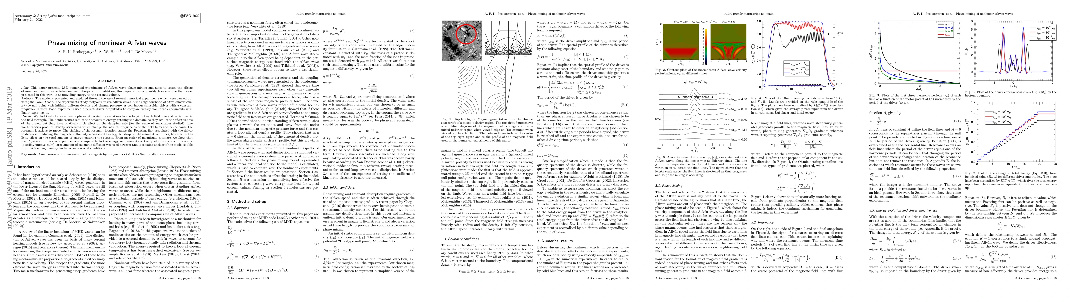 Numerical experiments show that nonlinear Alfven waves phase mix due to variations in field strength and length, reducing energy entry but with minimal effect on damping rate.