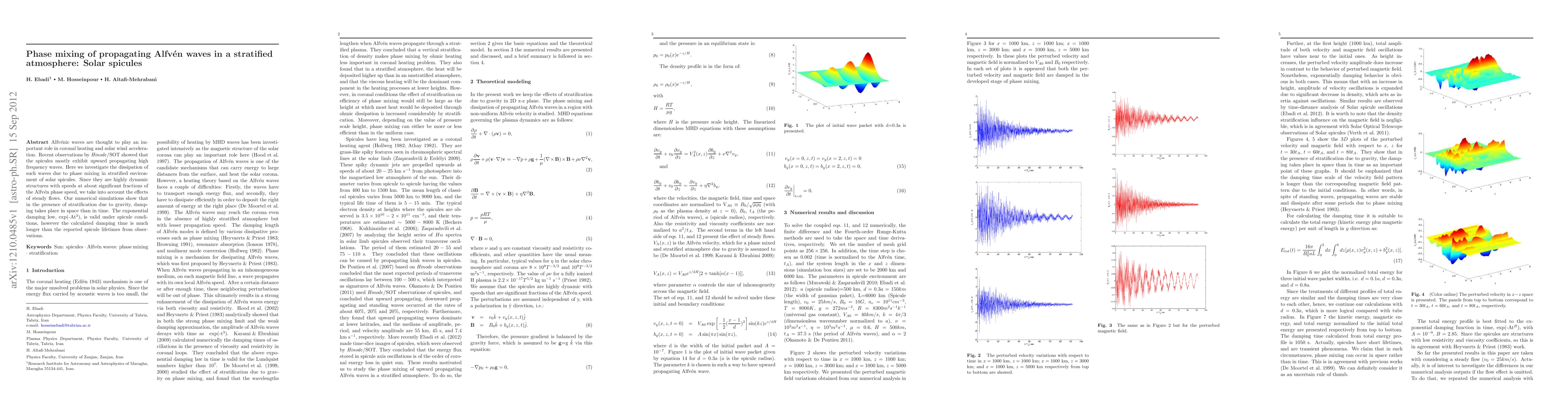 The paper presents a theoretical model and numerical simulations to study phase mixing of Alfven waves in stratified solar spicules, providing insights into their dissipation mechanisms.