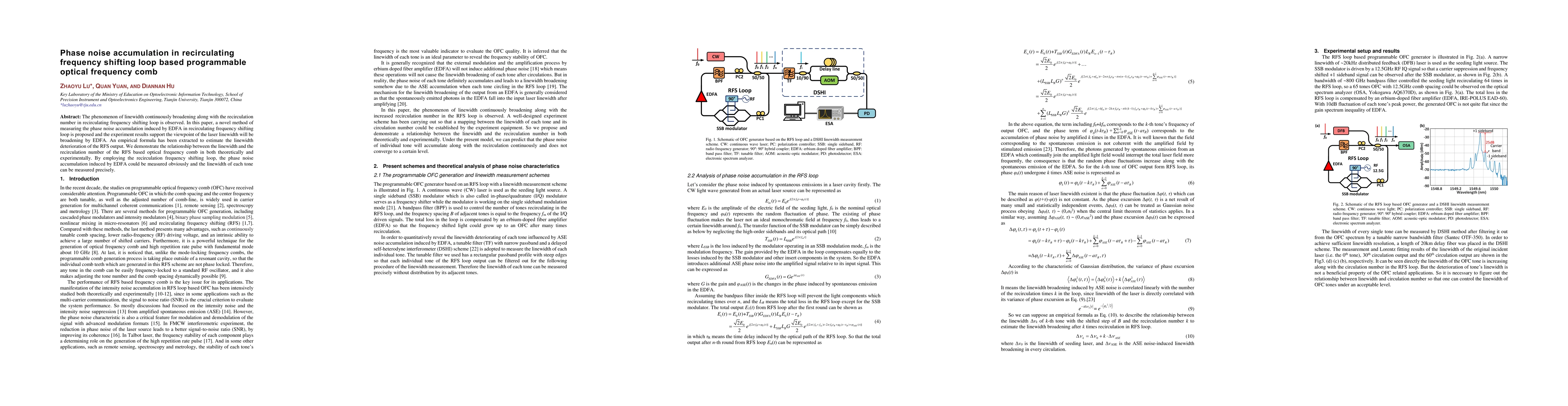 This paper investigates phase noise accumulation in a recirculating frequency shifting loop for programmable optical frequency combs, proposing a novel method to measure the broadening of laser linewidth due to EDFA. Experimental and theoretical results confirm the relationship between linewidth deterioration and the recirculation number, providing an empirical formula for estimating linewidth broadening.