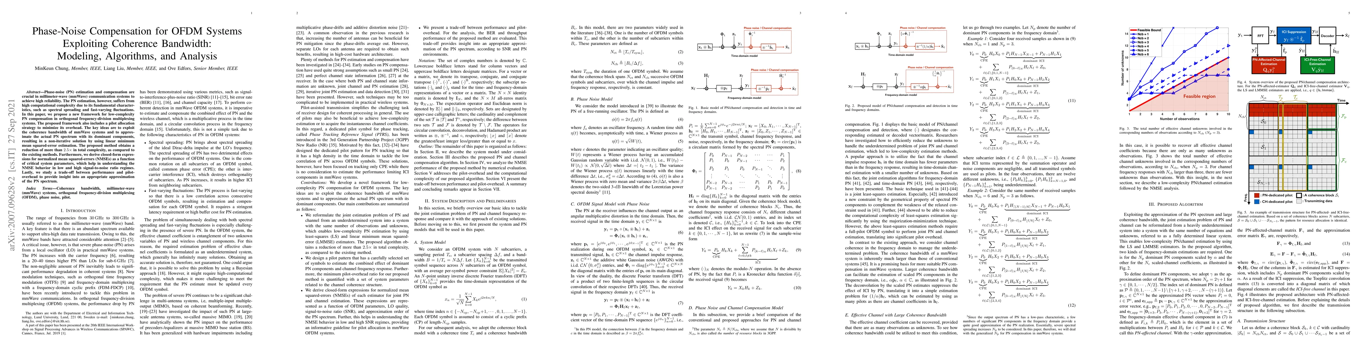 Researchers develop a new framework for phase-noise compensation in OFDM systems that exploits coherence bandwidth and minimizes computational complexity. The method achieves a 2.5x reduction in total complexity compared to existing methods.