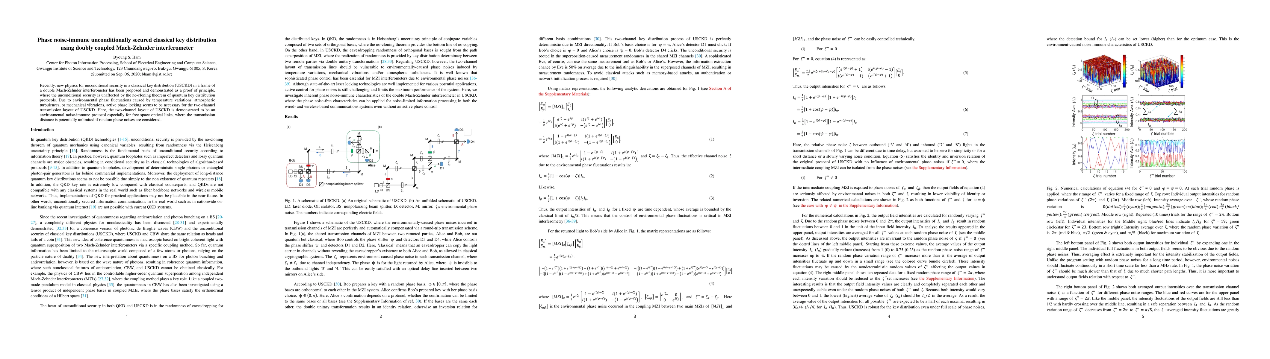 Recently, new physics for unconditional security in a classical key distribution (USCKD) in a frame of a double Mach-Zehnder interferometer has been proposed and demonstrated as a proof of principle, where the unconditional security is unaffected by the no-cloning theorem of quantum key distribution protocols. Due to environmental phase fluctuations caused by temperature variations, atmospheric turbulences, or mechanical vibrations, active phase locking seems to be necessary for the two-channel transmission layout of USCKD. Here, the two-channel layout of USCKD is demonstrated to be an environmental noise-immune protocol especially for free space optical links, where the transmission distance is potentially unlimited if random phase noises are considered.
