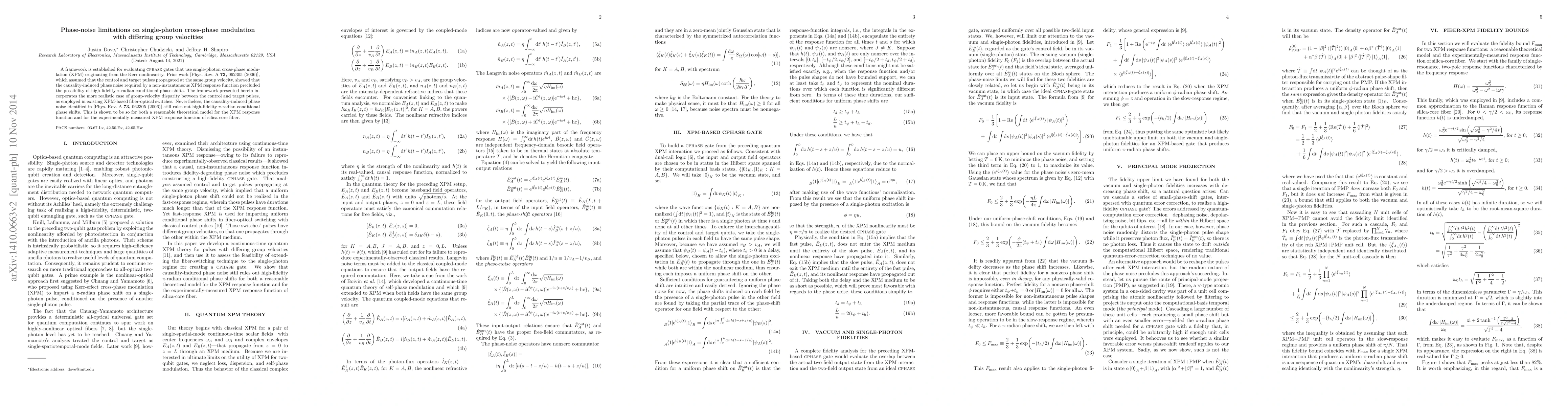 A framework is established for evaluating {\sc cphase} gates that use single-photon cross-phase modulation (XPM) originating from the Kerr nonlinearity. Prior work Phys. Rev. A {\bf 73,} 062305 (2006)], which assumed that the control and target pulses propagated at the same group velocity, showed that the causality-induced phase noise required by a non-instantaneous XPM response function precluded the possibility of high-fidelity $\pi$-radian conditional phase shifts. The framework presented herein incorporates the more realistic case of group-velocity disparity between the control and target pulses, as employed in existing XPM-based fiber-optical switches. Nevertheless, the causality-induced phase noise identified in [Phys. Rev. A {\bf 73,} 062305 (2006)] still rules out high-fidelity $\pi$-radian conditional phase shifts. This is shown to be so for both a reasonable theoretical model for the XPM response function and for the experimentally-measured XPM response function of silica-core fiber.