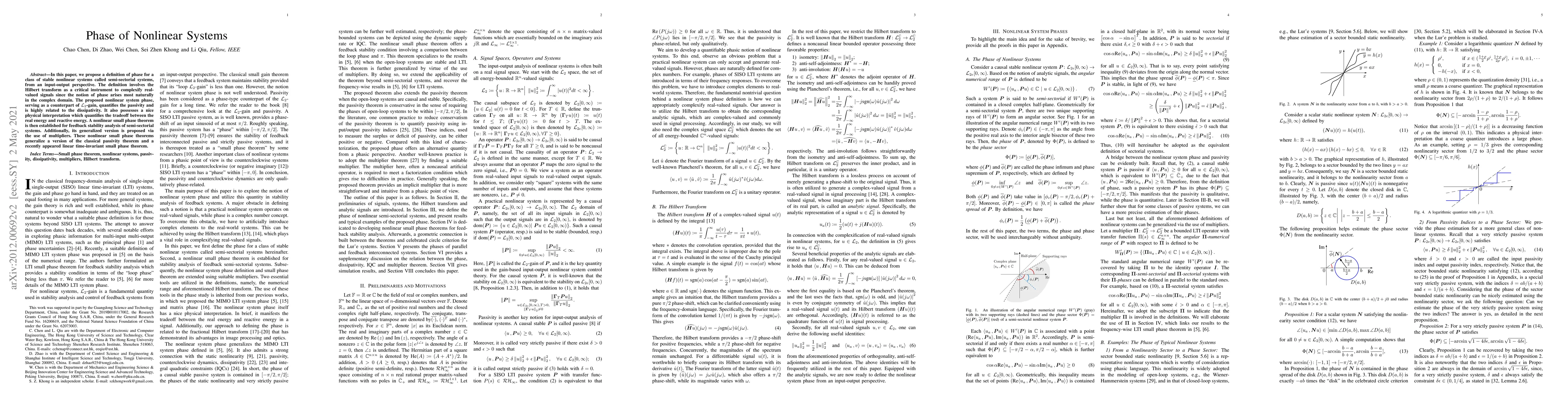 This paper proposes a definition of phase for nonlinear systems that measures passivity and trade-off between real and reactive energy. It establishes nonlinear small phase theorems for feedback stability analysis in semi-sectorial systems.