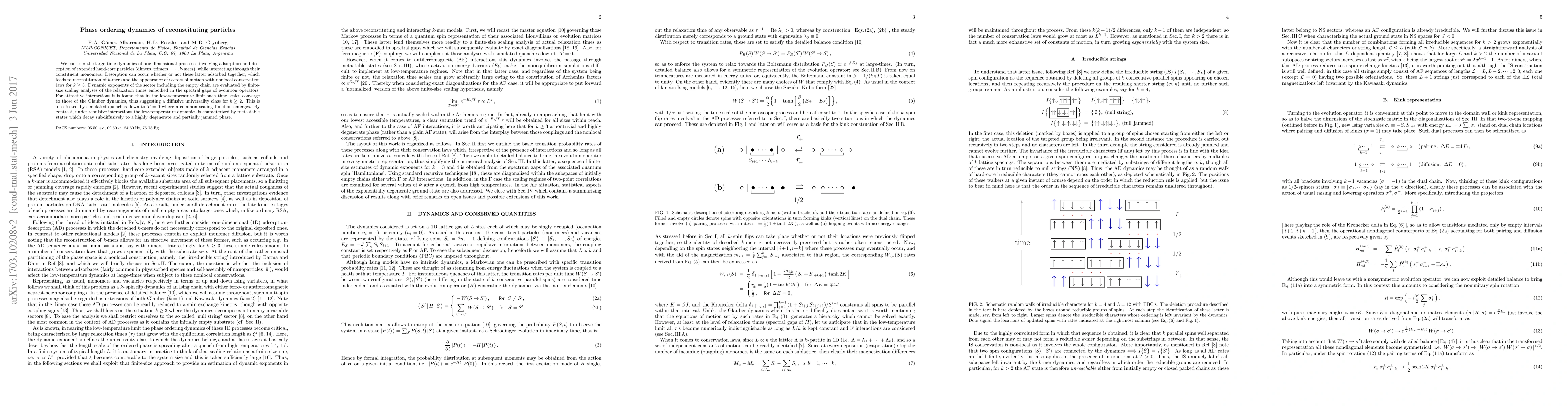 We consider the large-time dynamics of one-dimensional processes involving adsorption and desorption of extended hard-core particles (dimers, trimers,\,$\cdots,k$-mers), while interacting through their constituent monomers. Desorption can occur whether or not these latter adsorbed together, which leads to reconstitution of $k$-mers and the appearance of sectors of motion with nonlocal conservation laws for $k \ge 3$. Dynamic exponents of the sector including the empty chain are evaluated by finite-size scaling analyses of the relaxation times embodied in the spectral gaps of evolution operators. For attractive interactions it is found that in the low-temperature limit such time scales converge to those of the Glauber dynamics, thus suggesting a diffusive universality class for $k \ge 2$. This is also tested by simulated quenches down to $T=0$ where a common scaling function emerges. By contrast, under repulsive interactions the low-temperature dynamics is characterized by metastable states which decay subdiffusively to a highly degenerate and partially jammed phase.