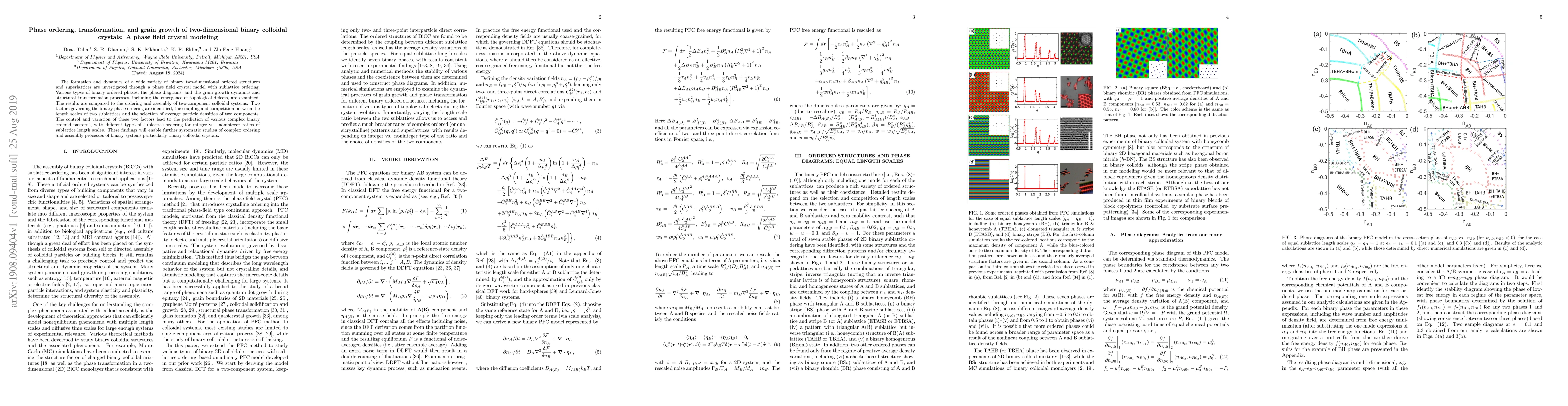 This paper investigates the phase ordering, transformation, and grain growth dynamics of two-dimensional binary colloidal crystals using a phase field crystal model. It identifies coupling and competition between sublattice length scales and average particle densities as key factors governing binary phase ordering, predicting various complex ordered patterns.