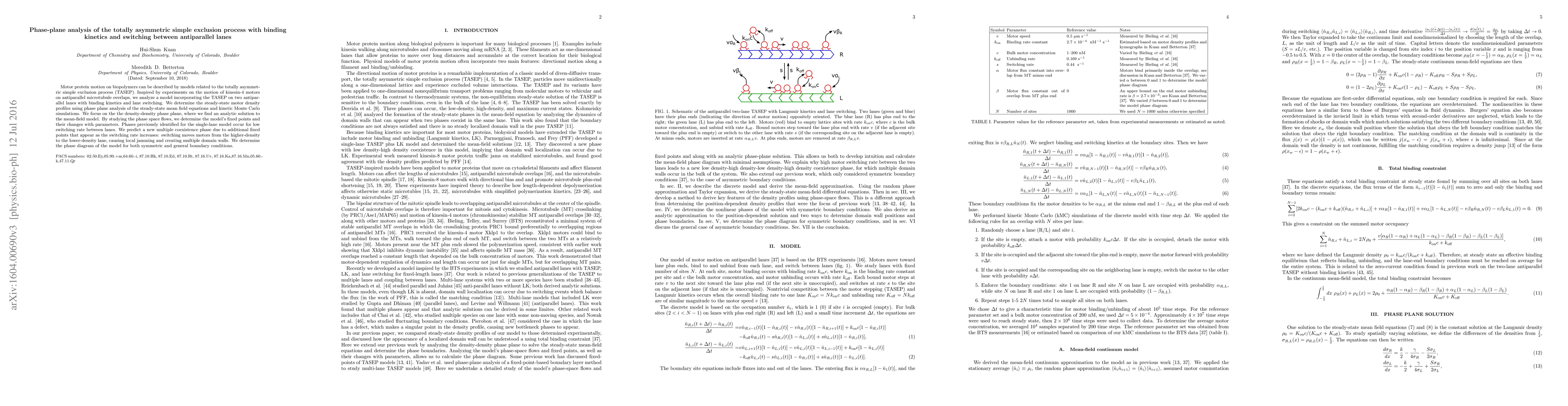 This paper analyzes a TASEP model for motor protein motion on antiparallel microtubules with binding kinetics and lane switching, determining steady-state motor density profiles using phase plane analysis and simulations. It predicts a new multiple coexistence phase due to increased switching rates, leading to local jamming and domain walls.