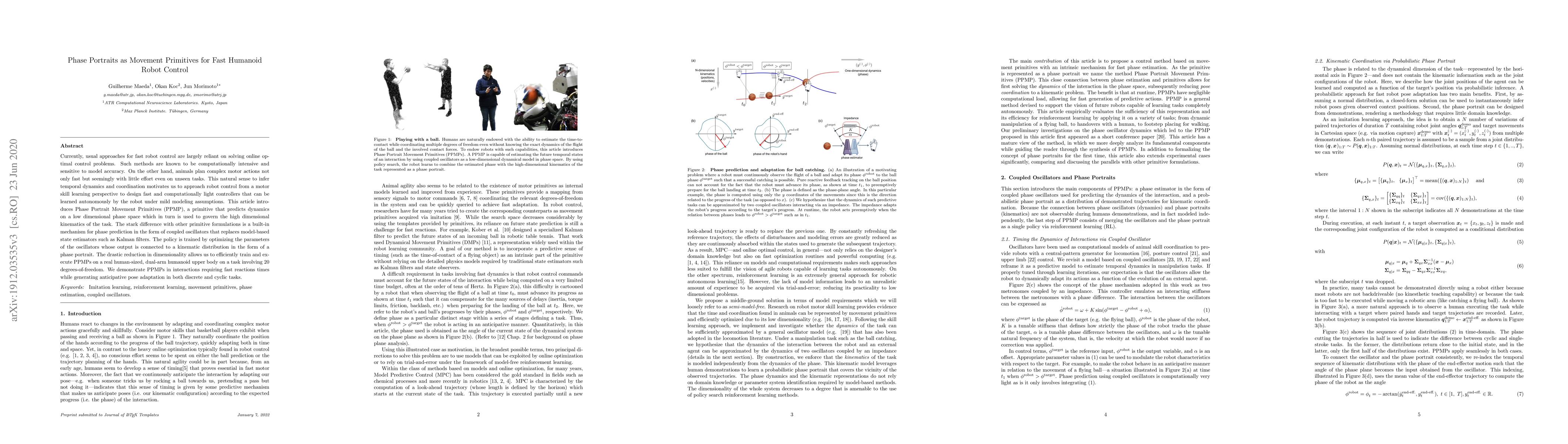 This paper proposes Phase Portrait Movement Primitives (PPMP) for fast humanoid robot control, leveraging low-dimensional phase space dynamics to reduce computational load. PPMPs use coupled oscillators for phase prediction instead of traditional state estimators, enabling efficient training and execution on a dual-arm humanoid robot.