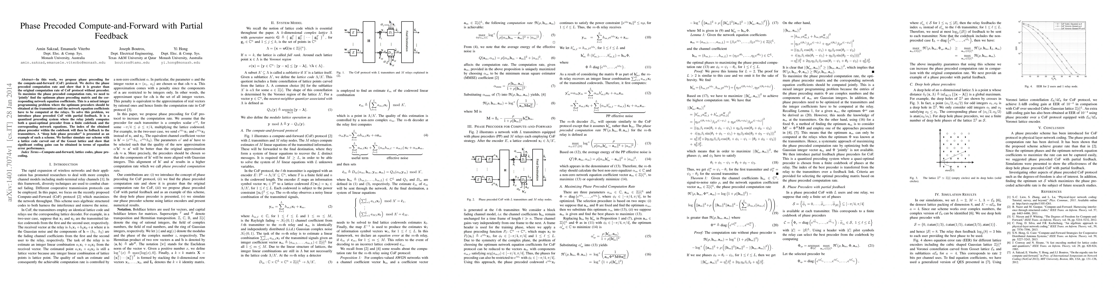 In this work, we propose phase precoding for the compute-and-forward (CoF) protocol. We derive the phase precoded computation rate and show that it is greater than the original computation rate of CoF protocol without precoder. To maximize the phase precoded computation rate, we need to 'jointly' find the optimum phase precoding matrix and the corresponding network equation coefficients. This is a mixed integer programming problem where the optimum precoders should be obtained at the transmitters and the network equation coefficients have to be computed at the relays. To solve this problem, we introduce phase precoded CoF with partial feedback. It is a quantized precoding system where the relay jointly computes both a quasi-optimal precoder from a finite codebook and the corresponding network equations. The index of the obtained phase precoder within the codebook will then be fedback to the transmitters. A "deep hole phase precoder" is presented as an example of such a scheme. We further simulate our scheme with a lattice code carved out of the Gosset lattice and show that significant coding gains can be obtained in terms of equation error performance.