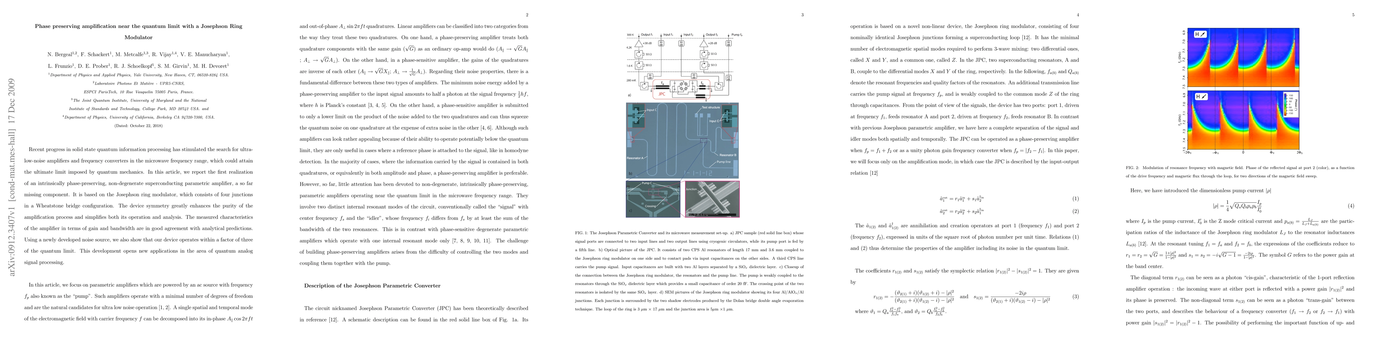 This paper reports the first phase-preserving, non-degenerate superconducting parametric amplifier based on a Josephson ring modulator, achieving near-quantum-limit noise performance. The device's symmetry enhances amplification purity and aligns its gain and bandwidth with theoretical predictions, opening new avenues for quantum analog signal processing.