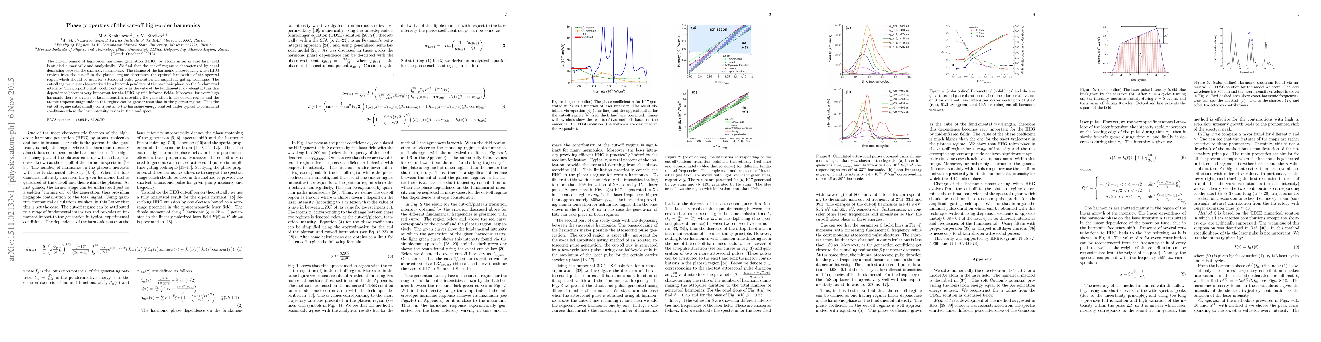 The cut-off regime of high-order harmonic generation (HHG) by atoms in an intense laser field is studied numerically and analytically. We find that the cut-off regime is characterized by equal dephasing between the successive harmonics. The change of the harmonic phase-locking when HHG evolves from the cut-off to the plateau regime determines the optimal bandwidth of the spectral region which should be used for attosecond pulse generation via amplitude gating technique. The cut-off regime is also characterized by a linear dependence of the harmonic phase on the fundamental intensity. The proportionality coefficient grows as the cube of the fundamental wavelength, thus this dependence becomes very important for the HHG by mid-infrared fields. Moreover, for every high harmonic there is a {\it range} of laser intensities providing the generation in the cut-off regime and the atomic response magnitude in this regime can be greater than that in the plateau regime. Thus the cut-off regime substantially contributes to the harmonic energy emitted under typical experimental conditions where the laser intensity varies in time and space.