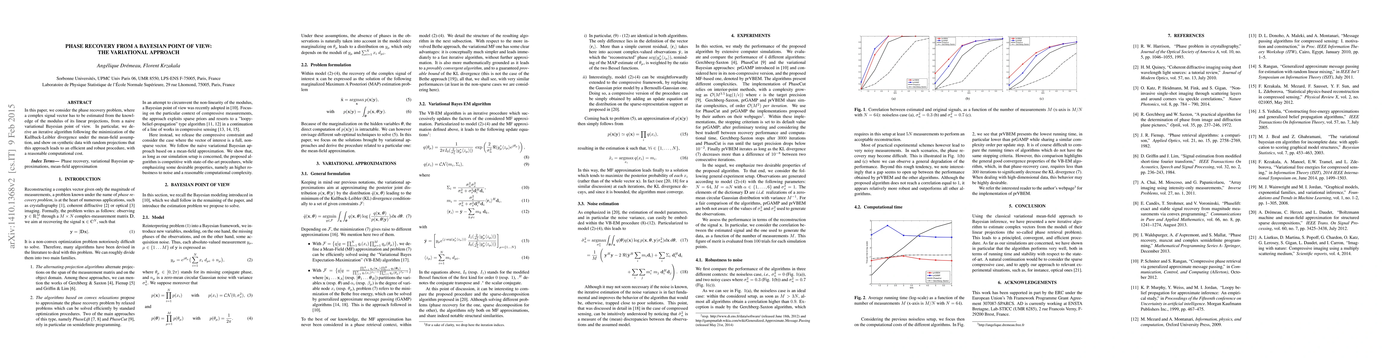 In this paper, we consider the phase recovery problem, where a complex signal vector has to be estimated from the knowledge of the modulus of its linear projections, from a naive variational Bayesian point of view. In particular, we derive an iterative algorithm following the minimization of the Kullback-Leibler divergence under the mean-field assumption, and show on synthetic data with random projections that this approach leads to an efficient and robust procedure, with a good computational cost.