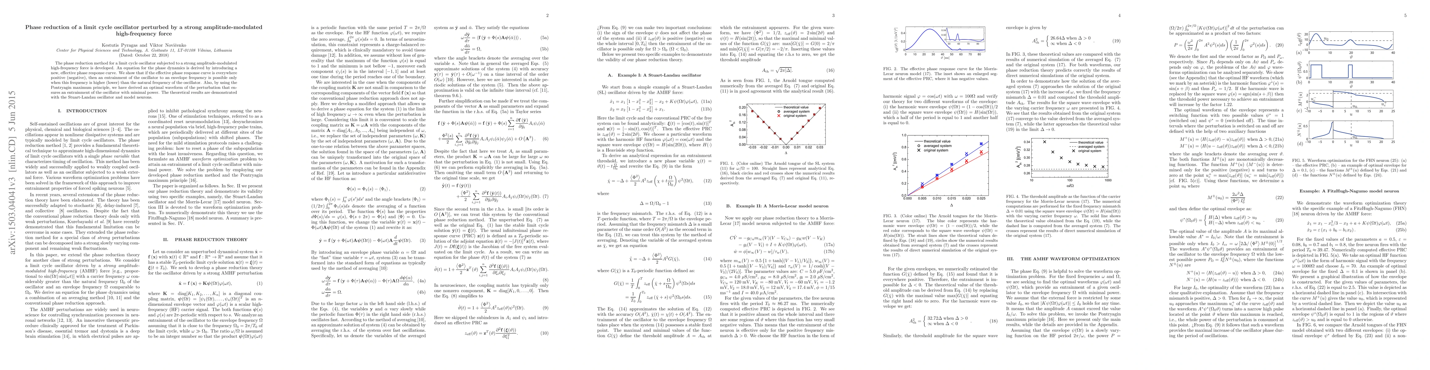 This paper develops a phase reduction method for limit cycle oscillators under strong amplitude-modulated high-frequency forces, deriving an effective phase response curve. It shows conditions for entrainment and finds an optimal perturbation waveform using the Pontryagin maximum principle, demonstrated via the Stuart-Landau oscillator and model neurons.
