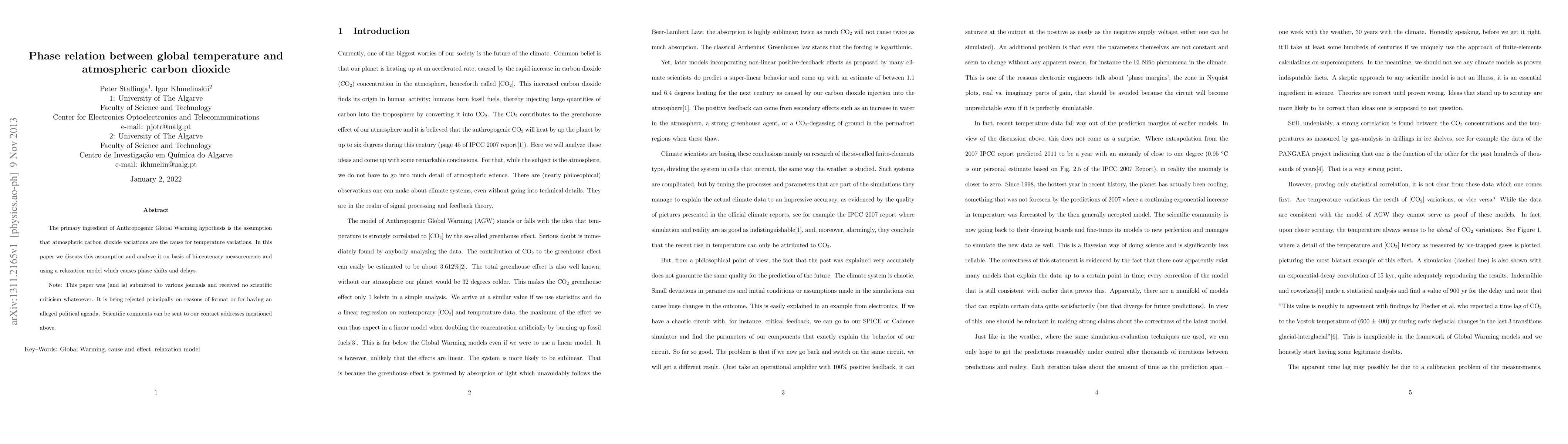 This paper examines the assumption that atmospheric CO2 variations drive global temperature changes, utilizing bi-centennial measurements and a relaxation model to explore potential phase shifts and delays in temperature responses to CO2 levels.