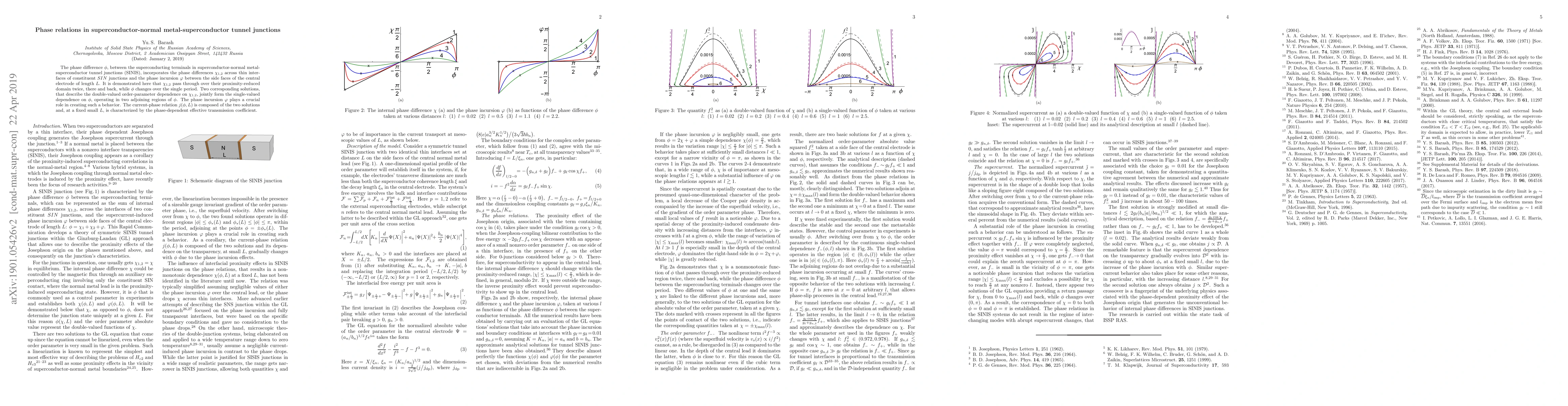 This paper investigates the phase relations in superconductor-normal metal-superconductor tunnel junctions (SINIS), showing that the phase difference $\phi$ incorporates multiple phase differences across interfaces and the phase incursion $\varphi$. It reveals the double-valued order-parameter dependence on $\chi_{1,2}$ that forms a single-valued dependence on $\phi$ through two adjoining regions, with $\varphi$ playing a crucial role in this behavior.