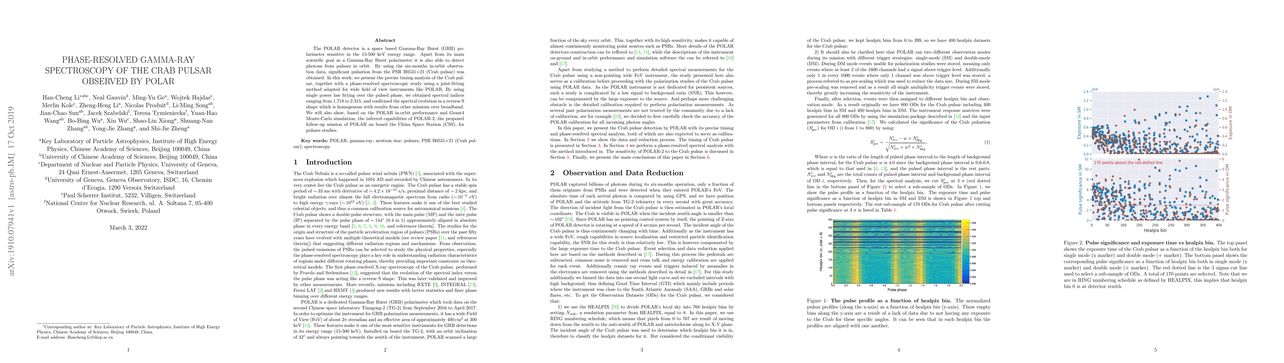 This paper reports on the precise timing analysis and phase-resolved gamma-ray spectroscopy of the Crab pulsar using data from the POLAR space-based gamma-ray detector. The study confirms spectral evolution in a reverse S shape and discusses the future capabilities of POLAR-2 for pulsar studies.
