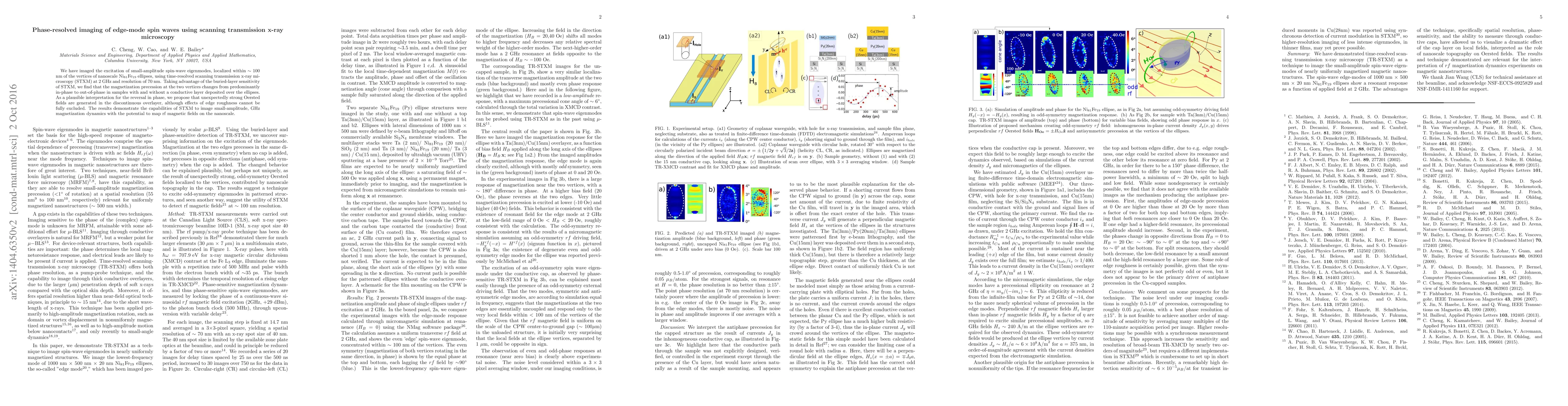 This paper uses time-resolved scanning transmission x-ray microscopy (STXM) to image spin-wave eigenmodes in nanoscale Ni$_{81}$Fe$_{19}$ ellipses, revealing a phase change in magnetization precession at vertices with and without a conductive overlayer. The study suggests strong Oersted fields in the overlayer may cause this phase reversal, showcasing STXM's capability for imaging GHz magnetization dynamics.