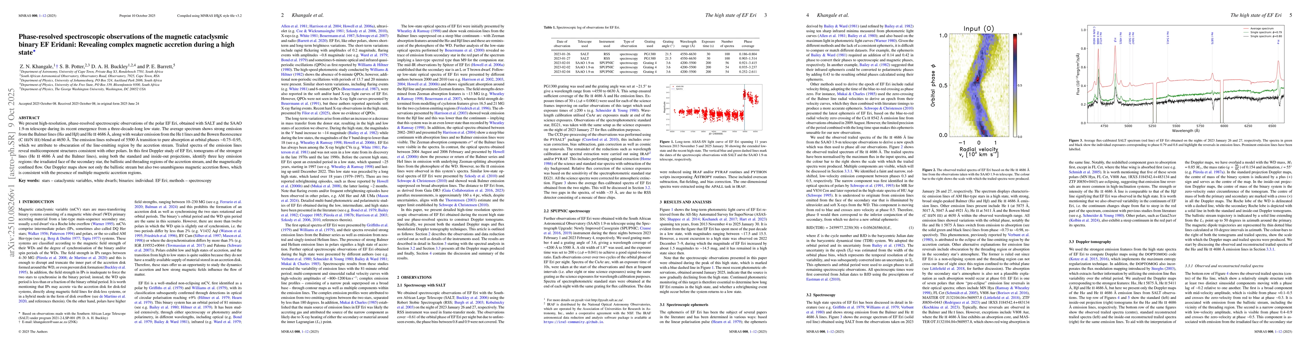The study employed spectroscopic observations using the Southern African Large Telescope (SALT) and the 1.9-m telescope of the South African Astronomical Observatory (SAAO) to analyze the light curves and spectral features of the cataclysmic variable system EFEri. The researchers utilized Doppler tomography and flux modulation analysis to investigate the accretion disk and magnetic field interactions.