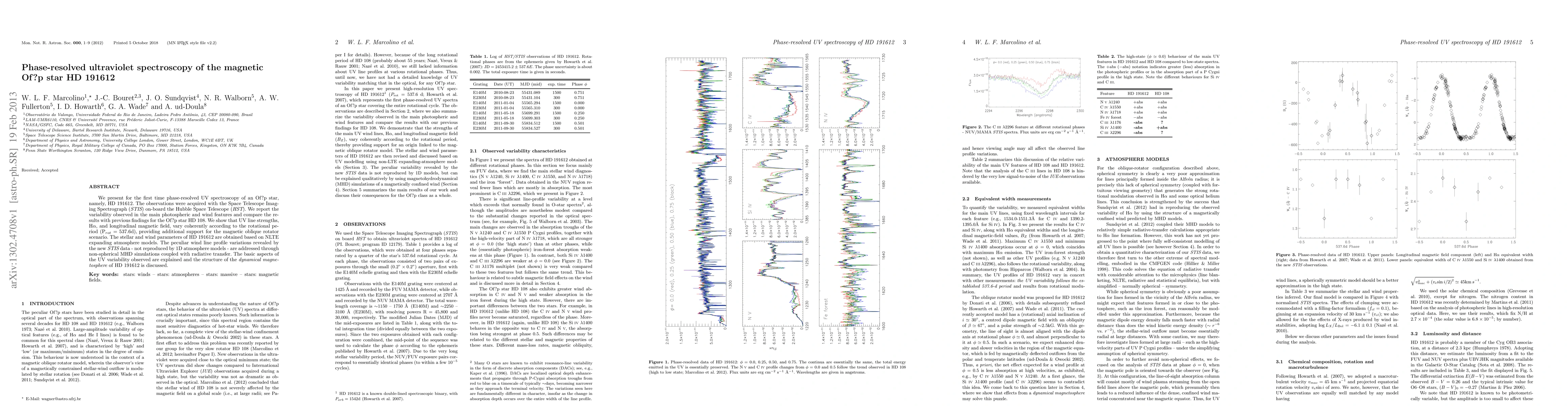 This paper presents the first phase-resolved UV spectroscopy of the magnetic Of?p star HD 191612 using HST/STIS, revealing coherent variability in UV lines and magnetic fields tied to its rotational period. The study employs non-spherical MHD simulations to explain peculiar wind line profile variations.