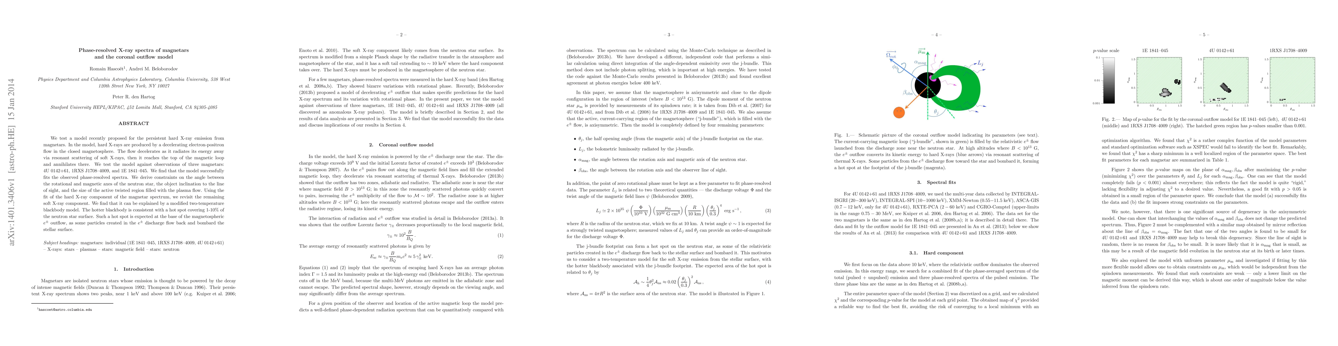 We test a model recently proposed for the persistent hard X-ray emission from magnetars. In the model, hard X-rays are produced by a decelerating electron-positron flow in the closed magnetosphere. The flow decelerates as it radiates its energy away via resonant scattering of soft X-rays, then it reaches the top of the magnetic loop and annihilates there. We test the model against observations of three magnetars: 4U 0142+61, 1RXS J1708-4009, and 1E 1841-045. We find that the model successfully fits the observed phase-resolved spectra. We derive constraints on the angle between the rotational and magnetic axes of the neutron star, the object inclination to the line of sight, and the size of the active twisted region filled with the plasma flow. Using the fit of the hard X-ray component of the magnetar spectrum, we revisit the remaining soft X-ray component. We find that it can be explained by a modified two-temperature blackbody model. The hotter blackbody is consistent with a hot spot covering 1-10% of the neutron star surface. Such a hot spot is expected at the base of the magnetospheric e+- outflow, as some particles created in the e+- discharge flow back and bombard the stellar surface.