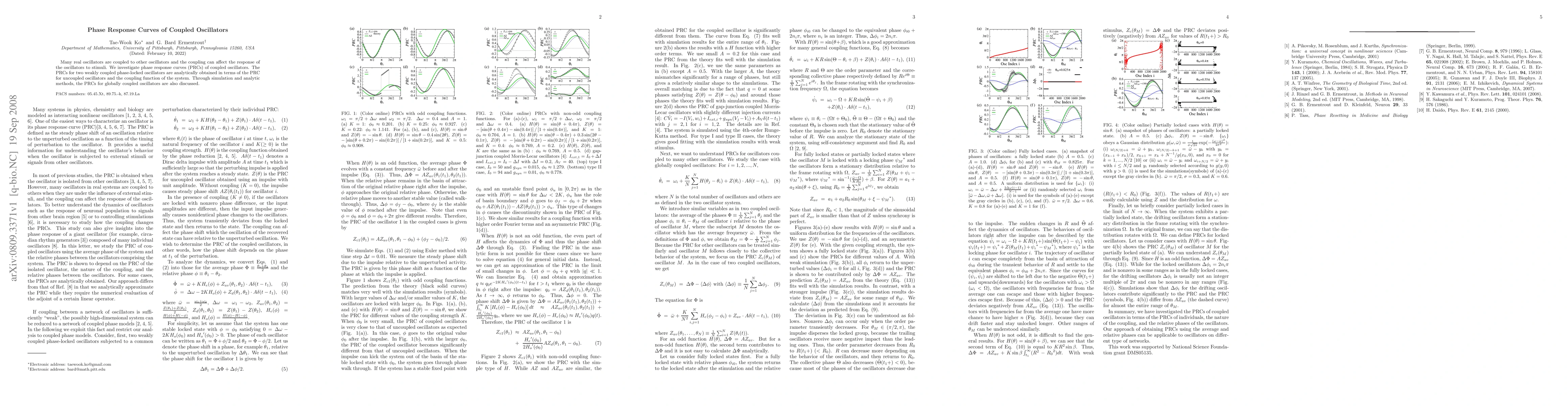 This paper investigates how coupling affects the phase response curves (PRCs) of oscillators, deriving analytical expressions for weakly coupled, phase-locked oscillators and discussing PRCs for globally coupled oscillators via simulation and analytic methods.