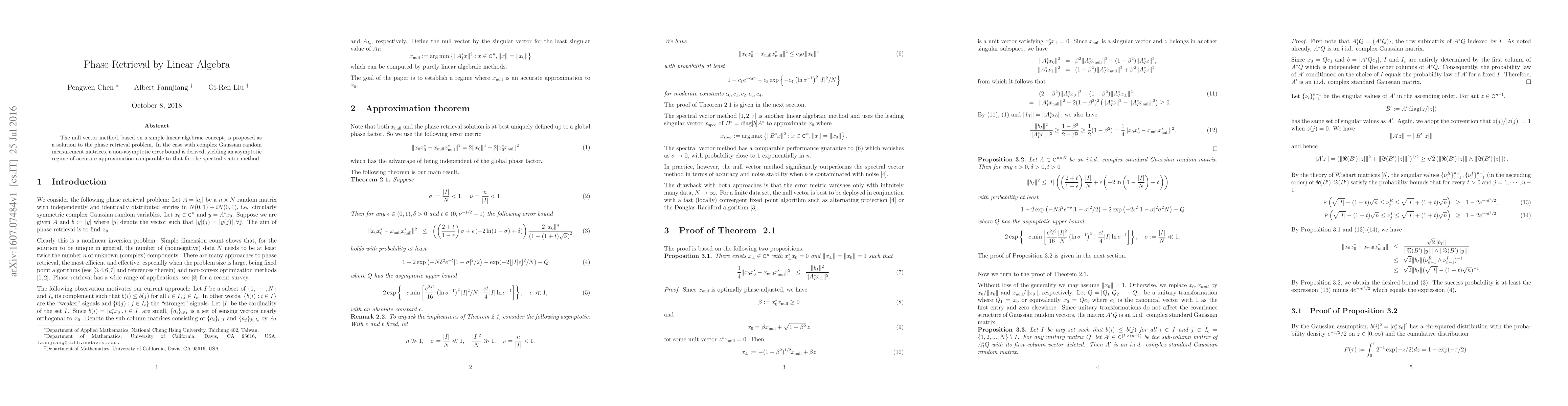 A new method called the null vector method uses linear algebra to solve phase retrieval problems with high accuracy, comparable to existing methods.