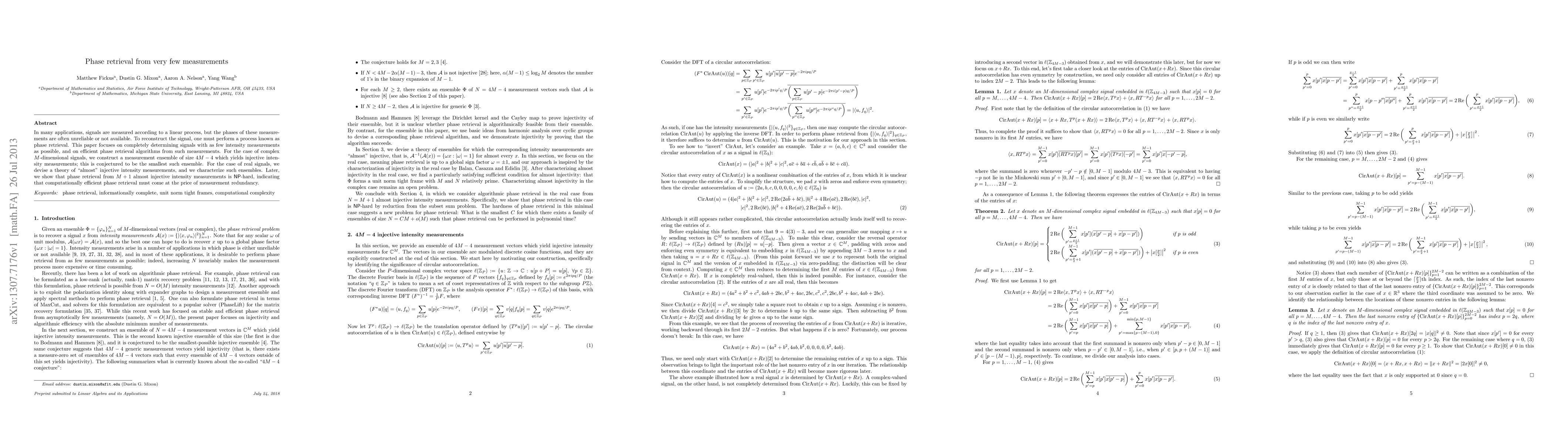 This paper explores the challenge of reconstructing signals from unreliable or missing phase measurements using the fewest possible intensity measurements. It proposes a measurement ensemble of size 4M-4 for complex M-dimensional signals, believed to be the smallest injective set, and discusses the NP-hardness of phase retrieval from M+1 almost injective measurements for real signals, indicating the necessity of measurement redundancy for efficient retrieval.