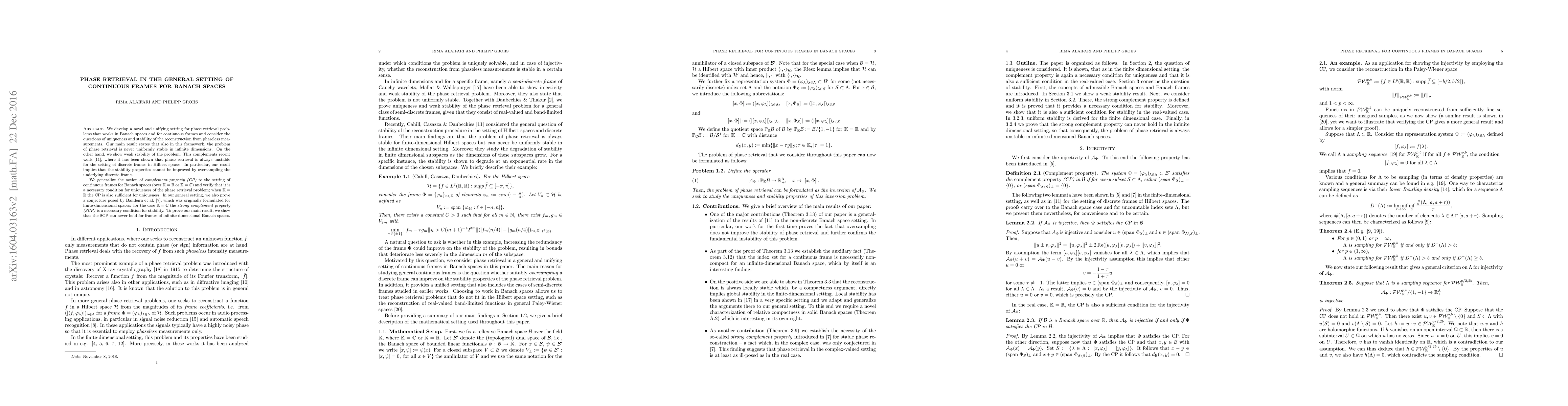 This paper develops a unifying framework for phase retrieval in Banach spaces, addressing the uniqueness and stability of reconstruction from phaseless measurements. It concludes that phase retrieval is never uniformly stable in infinite dimensions but exhibits weak stability, and generalizes the complement property to continuous frames, establishing it as a necessary condition for uniqueness in this setting.