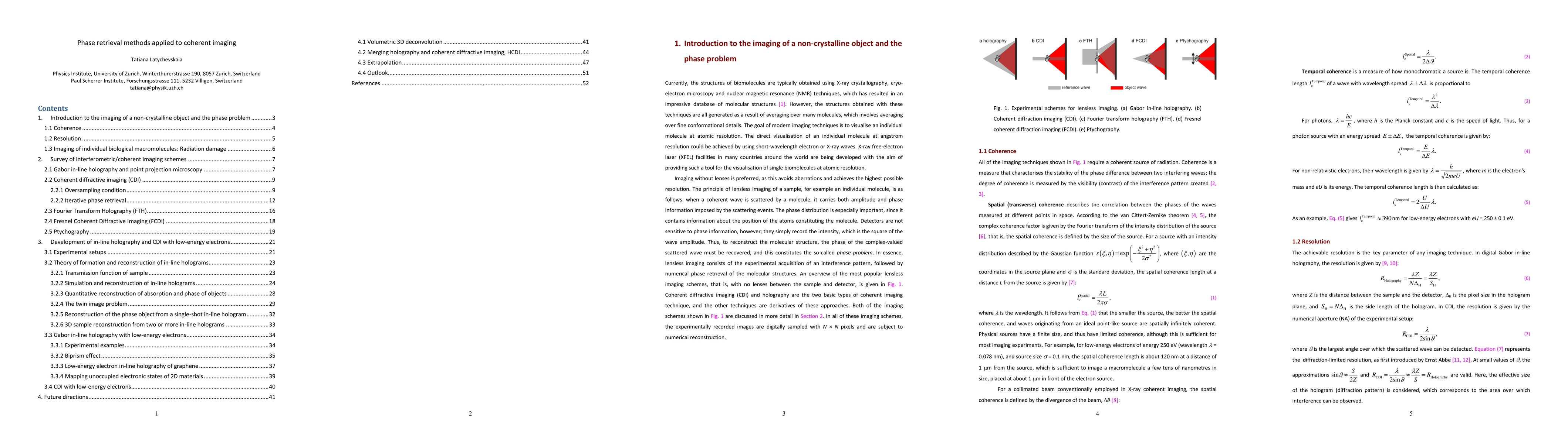 Modern microscopy techniques are developing towards high-resolution imaging, and tremendous progress has been made in past decades; however, the imaging of individual biological macromolecules at atomic resolution using short-wavelength radiation such as electrons or X-rays has not yet been achieved. The construction of free-electron lasers in many countries around the world arises from the desire to develop new imaging techniques by employing coherent radiation to image individual macromolecules. This work deals with coherent imaging and related phase retrieval techniques, with an emphasis on their application in the imaging of individual biological macromolecules.