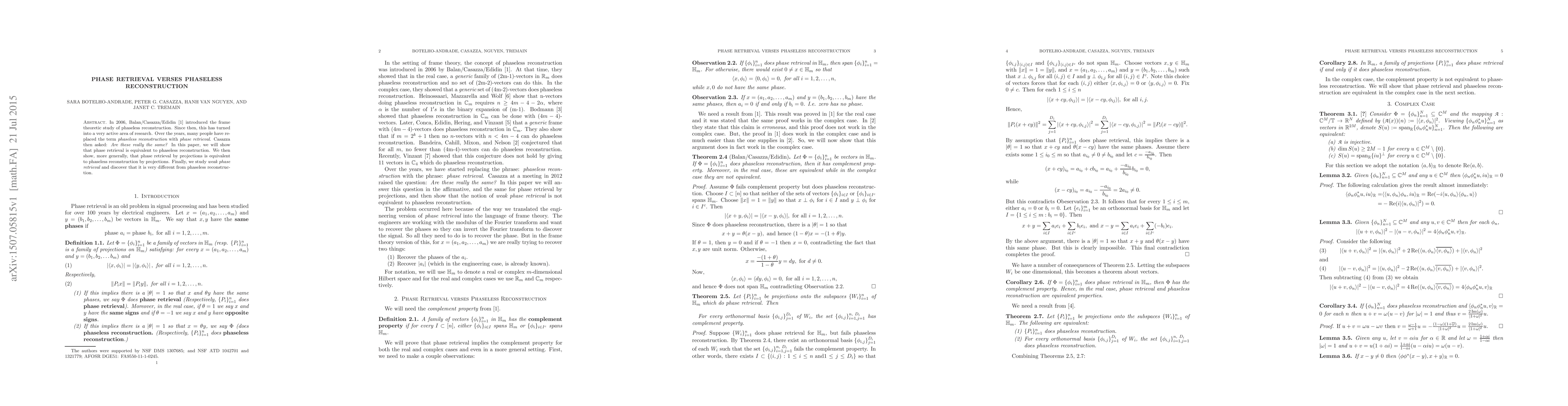 This paper demonstrates that phase retrieval is equivalent to phaseless reconstruction, particularly when using projection methods. It also distinguishes weak phase retrieval as a fundamentally different problem from phaseless reconstruction.