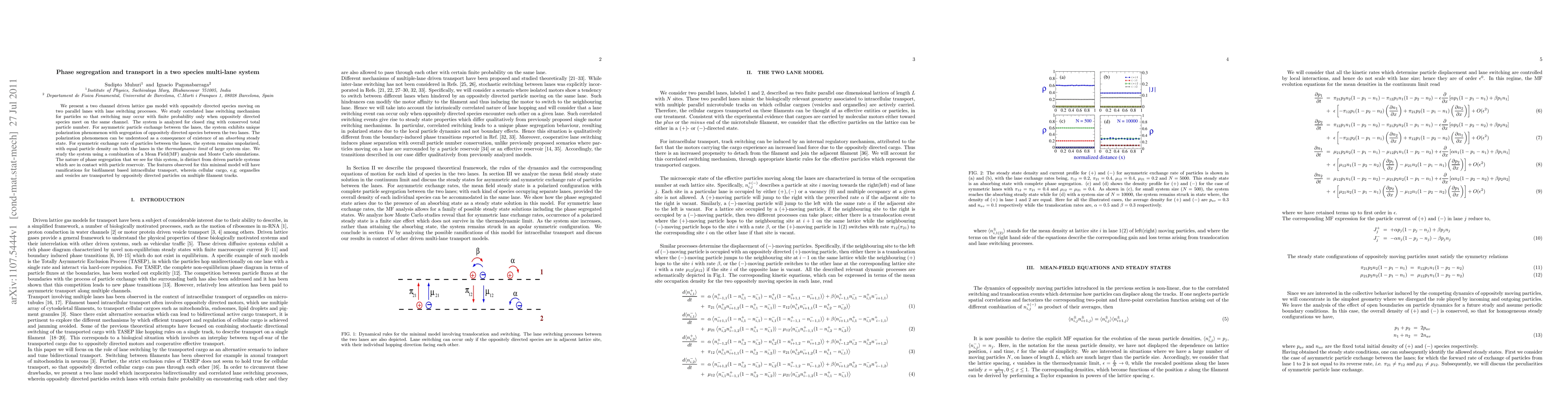 We present a two channel driven lattice gas model with oppositely directed species moving on two parallel lanes with lane switching processes. We study correlated lane switching mechanism for particles so that switching may occur with finite probability only when oppositely directed species meet on the same channel. The system is analyzed for closed ring with conserved total particle number. For asymmetric particle exchange between the lanes, the system exhibits unique polarization phenomenon with segregation of oppositely directed species between the two lanes. The polarization phenomenon can be understood as a consequence of existence of an absorbing steady state. For symmetric exchange rate of particles between the lanes, the system remains unpolarized, with equal particle density on both the lanes in the thermodynamic limit of large system size. We study the system using a combination of a Mean Field(MF) analysis and Monte Carlo simulations. The nature of phase segregation that we see for this system, is distinct from driven particle systems which are in contact with particle reservoir. The features observed for this minimal model will have ramifications for biofilament based intracellular transport, wherein cellular cargo, e.g; organelles and vesicles are transported by oppositely directed particles on multiple filament tracks.