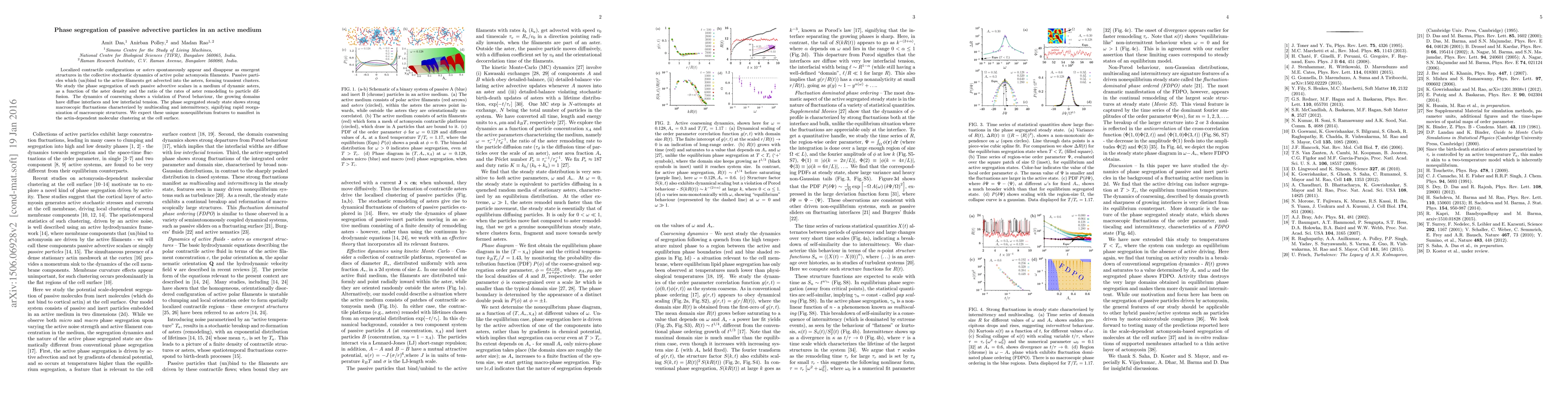 This paper investigates how passive particles segregate in a medium of dynamic active filaments, revealing complex phase segregation dynamics influenced by aster density and remodeling rates. The study finds nonequilibrium features such as multiscaling and intermittency in the steady state, suggesting unique molecular clustering behavior in active biological systems.