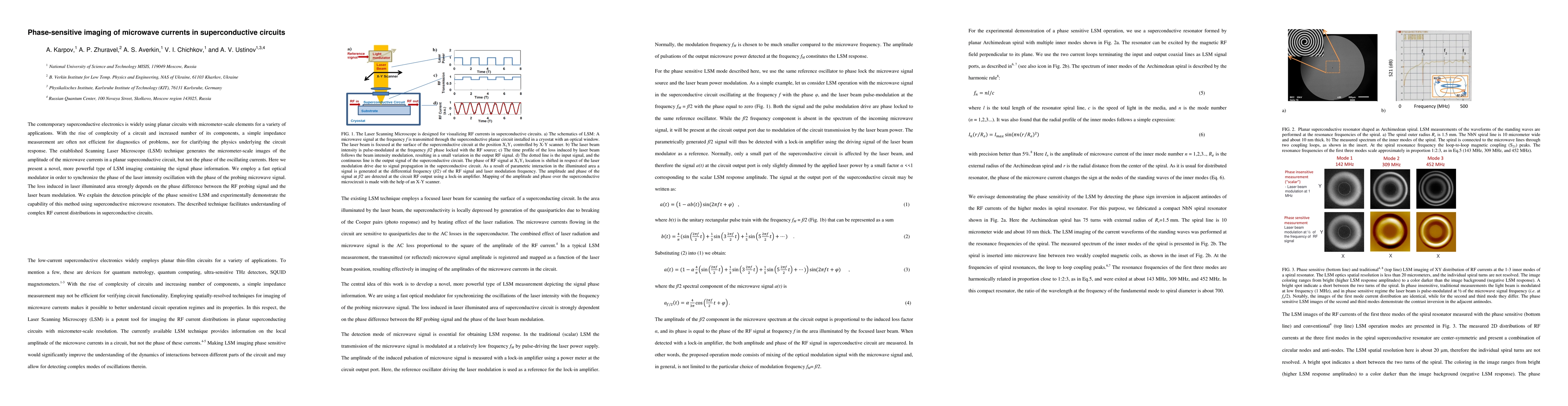 This paper introduces a novel phase-sensitive Scanning Laser Microscope (LSM) technique for imaging microwave currents in superconductive circuits, enabling the visualization of both amplitude and phase information. The method synchronizes laser modulation with the microwave signal, providing insights into complex RF current distributions.