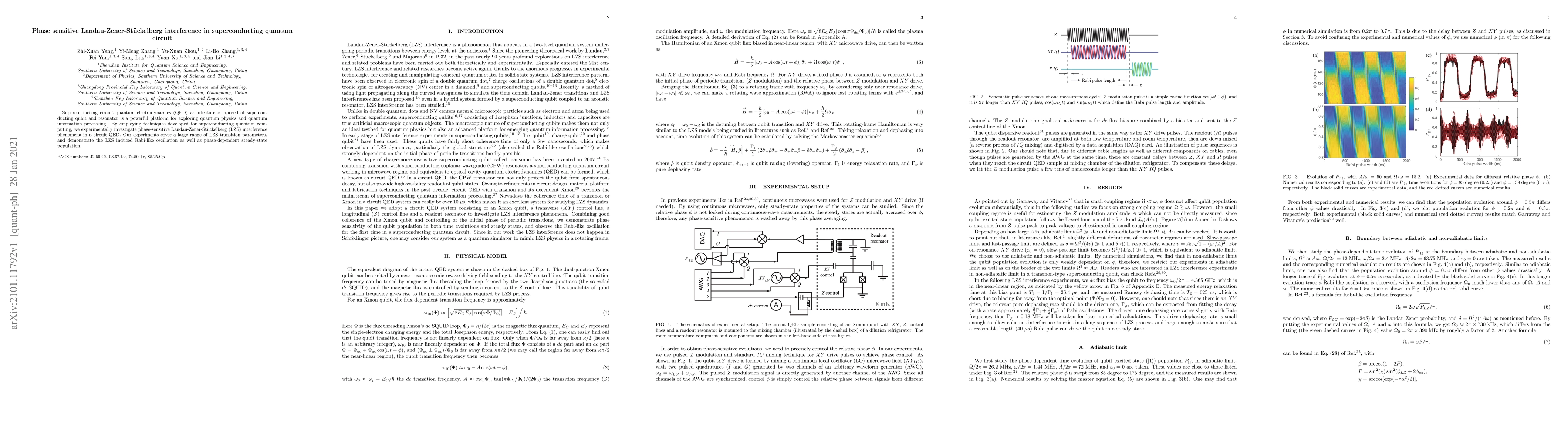 This paper investigates phase-sensitive Landau-Zener-Stückelberg interference in a superconducting quantum circuit, demonstrating Rabi-like oscillations and phase-dependent steady-state population through experimental exploration of transition parameters.
